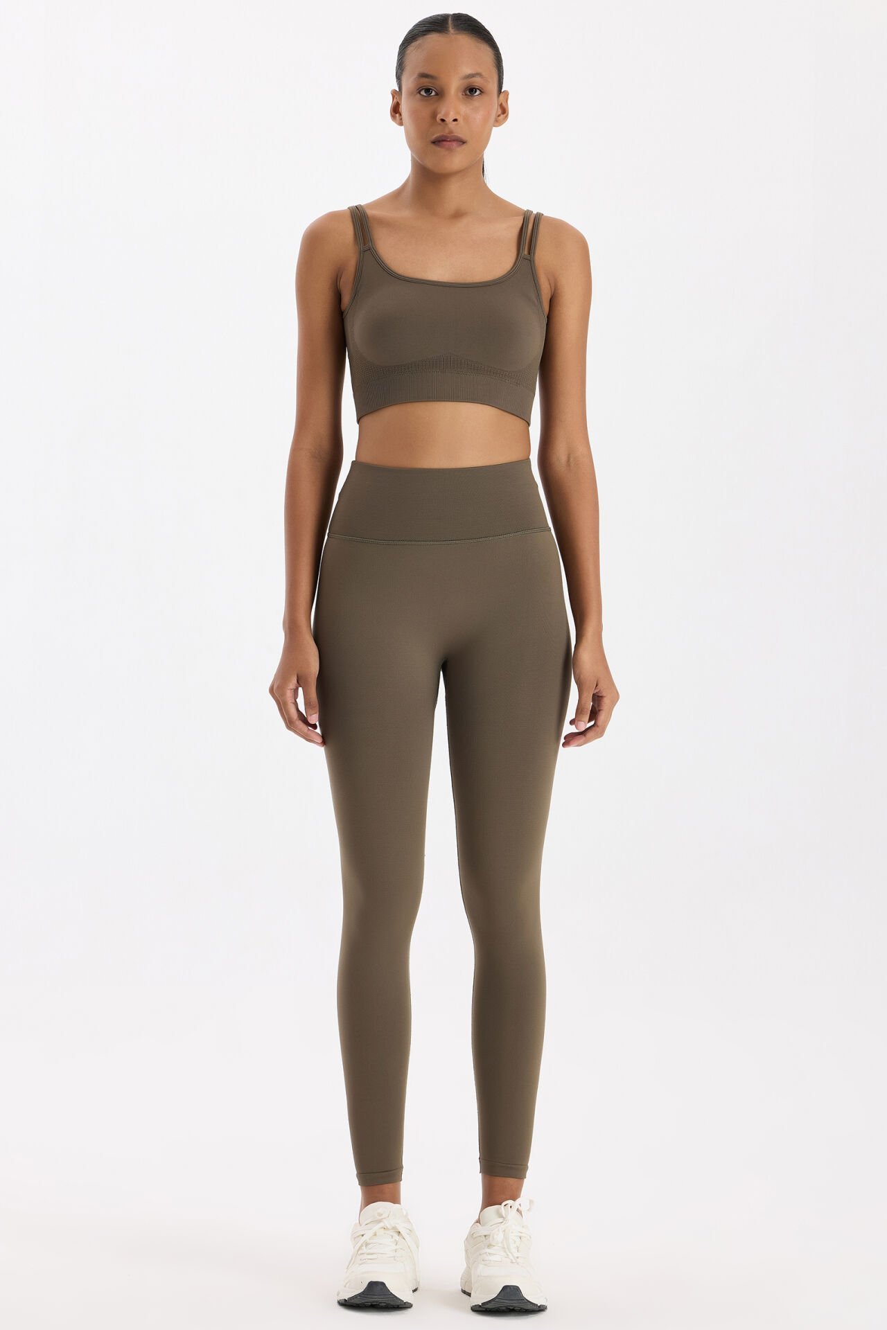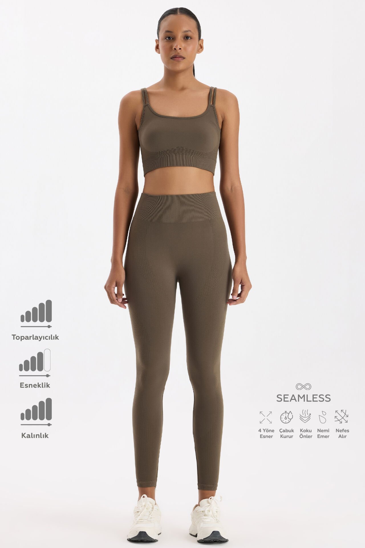 37907 Push Up Tayt Küllü Haki, doğanın zarif tonlarından ilham alan modern bir tasarıma sahiptir. Yüksek bel formu, vücudu sıkmadan sarar, bel çevresine destek verir ve fit bir siluet oluşturur. Bel arkasındaki v dikişleri estetik bir görünüm oluşturur. Bilekte biten kesimi, sade ama güçlü bir görünüm kazandırır.