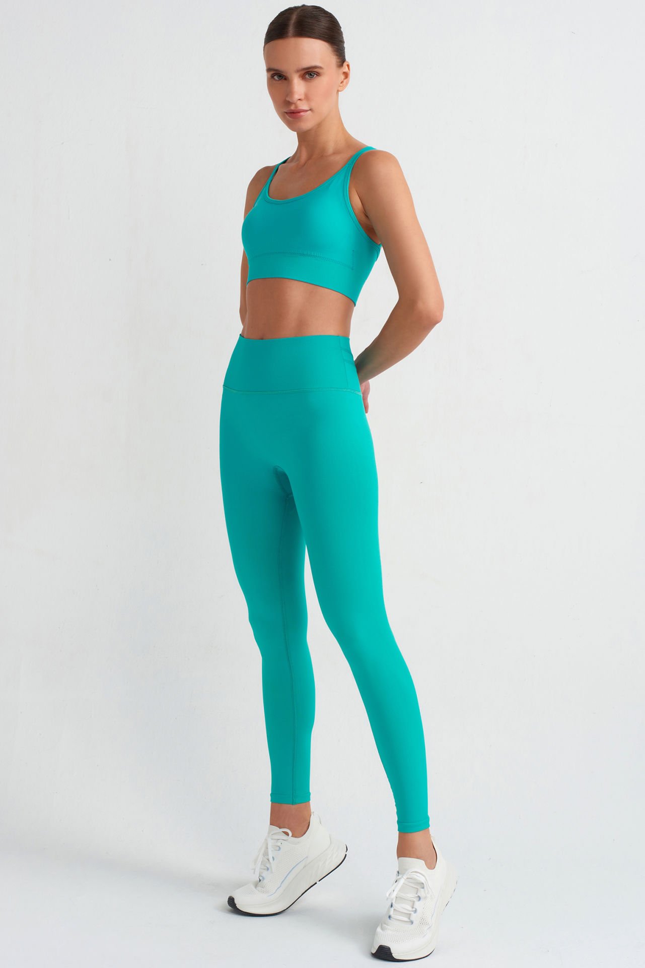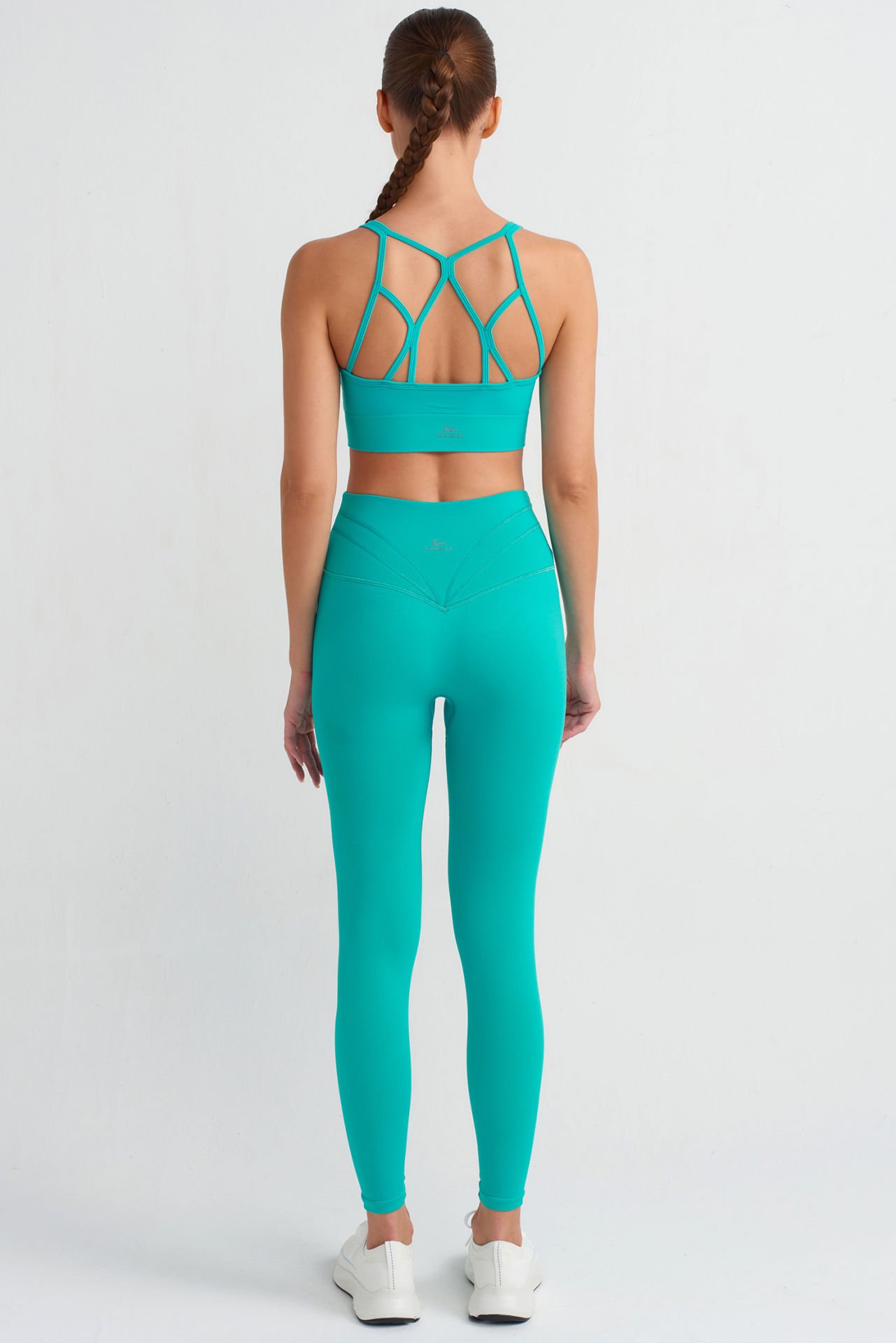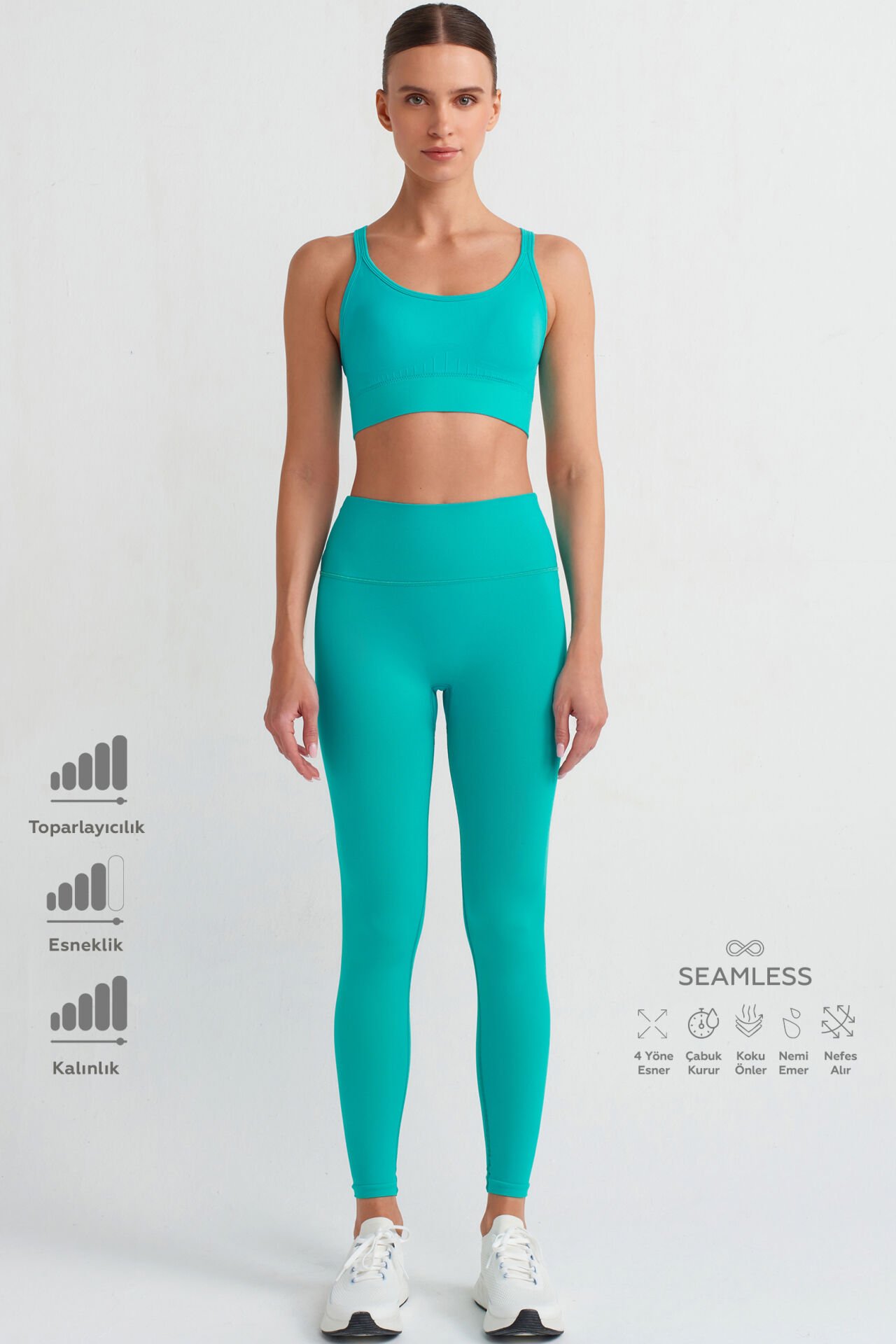 Push up etkili yeşilin enerjik tonu ile dizayn edilen push up tayt, bel kısmındaki V dikiş detayları ile görünümünü kusursuzlaştırır. Dikişsiz kumaş yapısı ile konforu ön planda tutar.