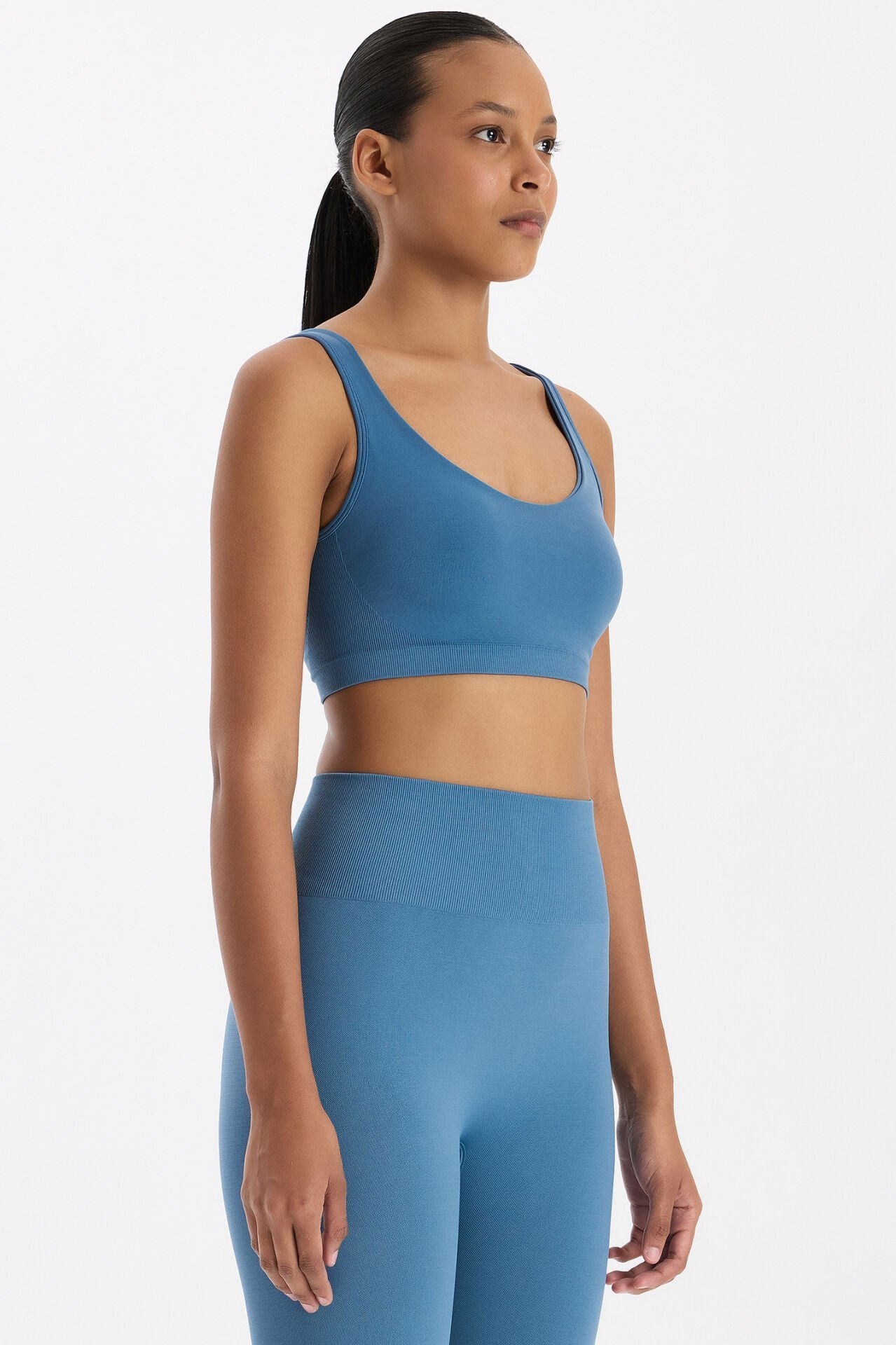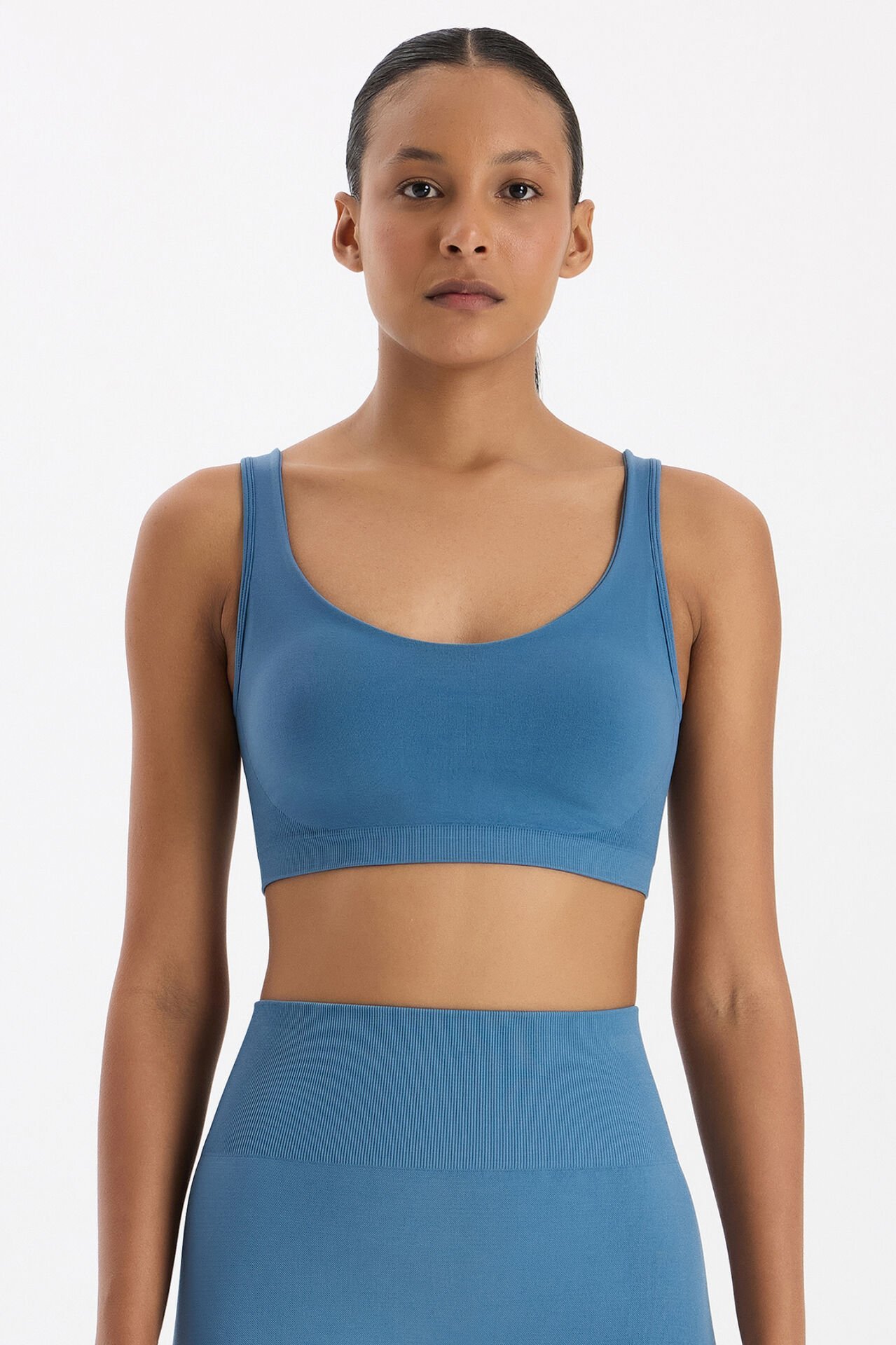 Kozmoz mavi sporcu sütyenini yüksek bel taytlar, oversize tişörtler veya crop sweatshirtlerle kombinleyerek spor salonunda, parkta veya günlük athleisure stilinde enerjik ve modern bir görünüm yakalayabilirsiniz.