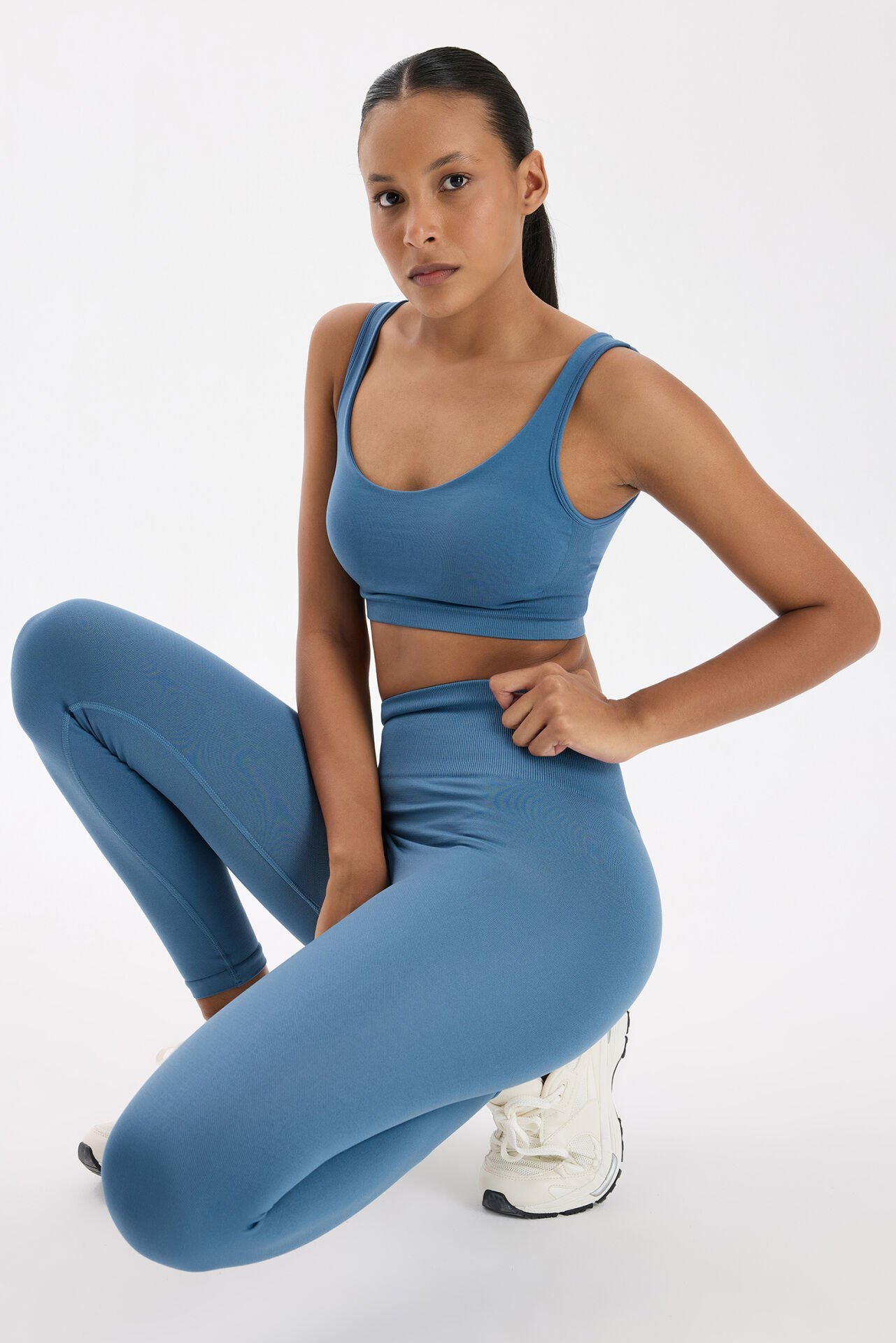 -Kozmoz mavi renk: Derin ve enerjik mavi tonu, hem siyah hem de renkli taytlarla kombinlenerek iddialı bir spor görünümü sunar.