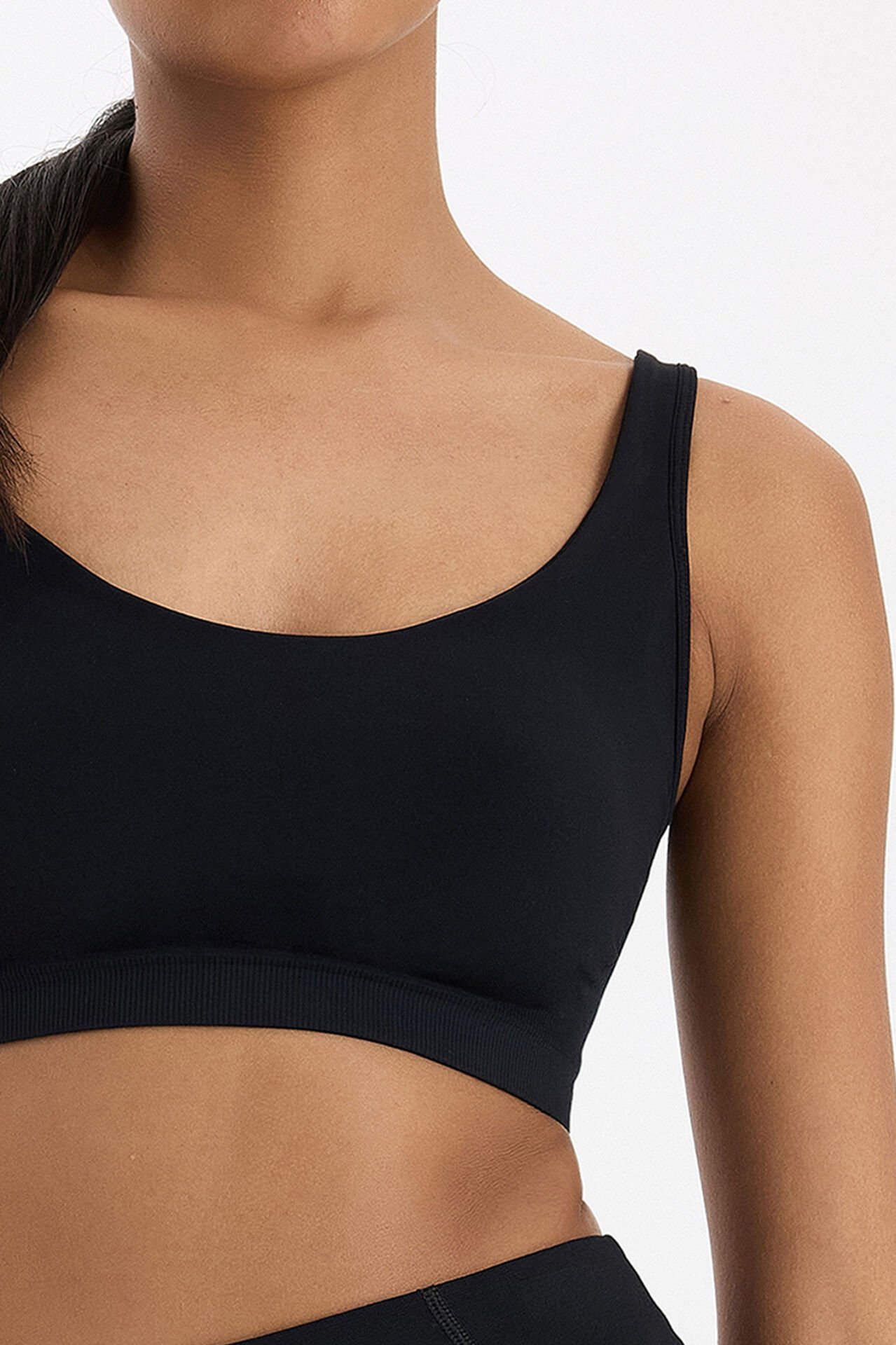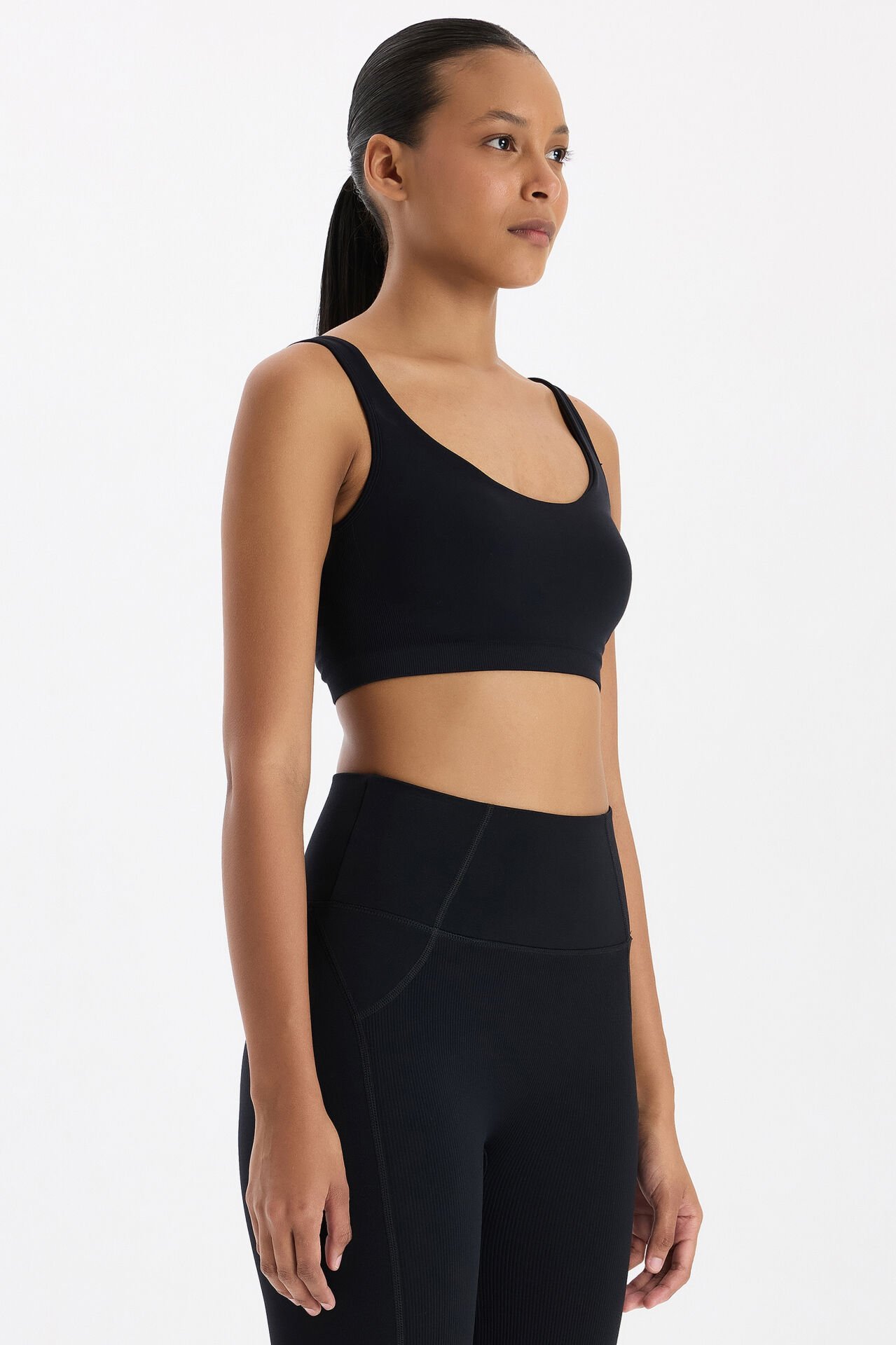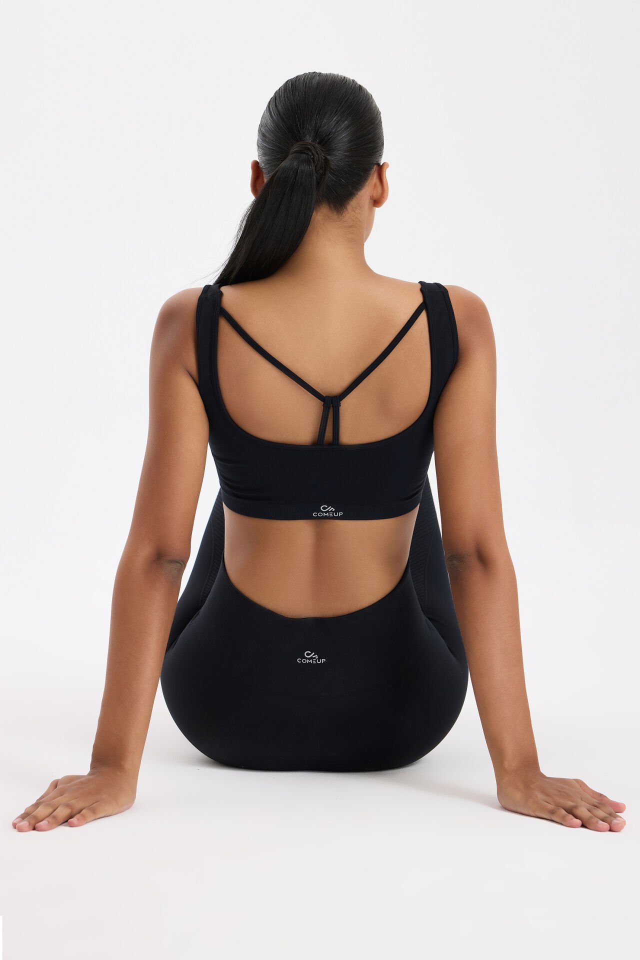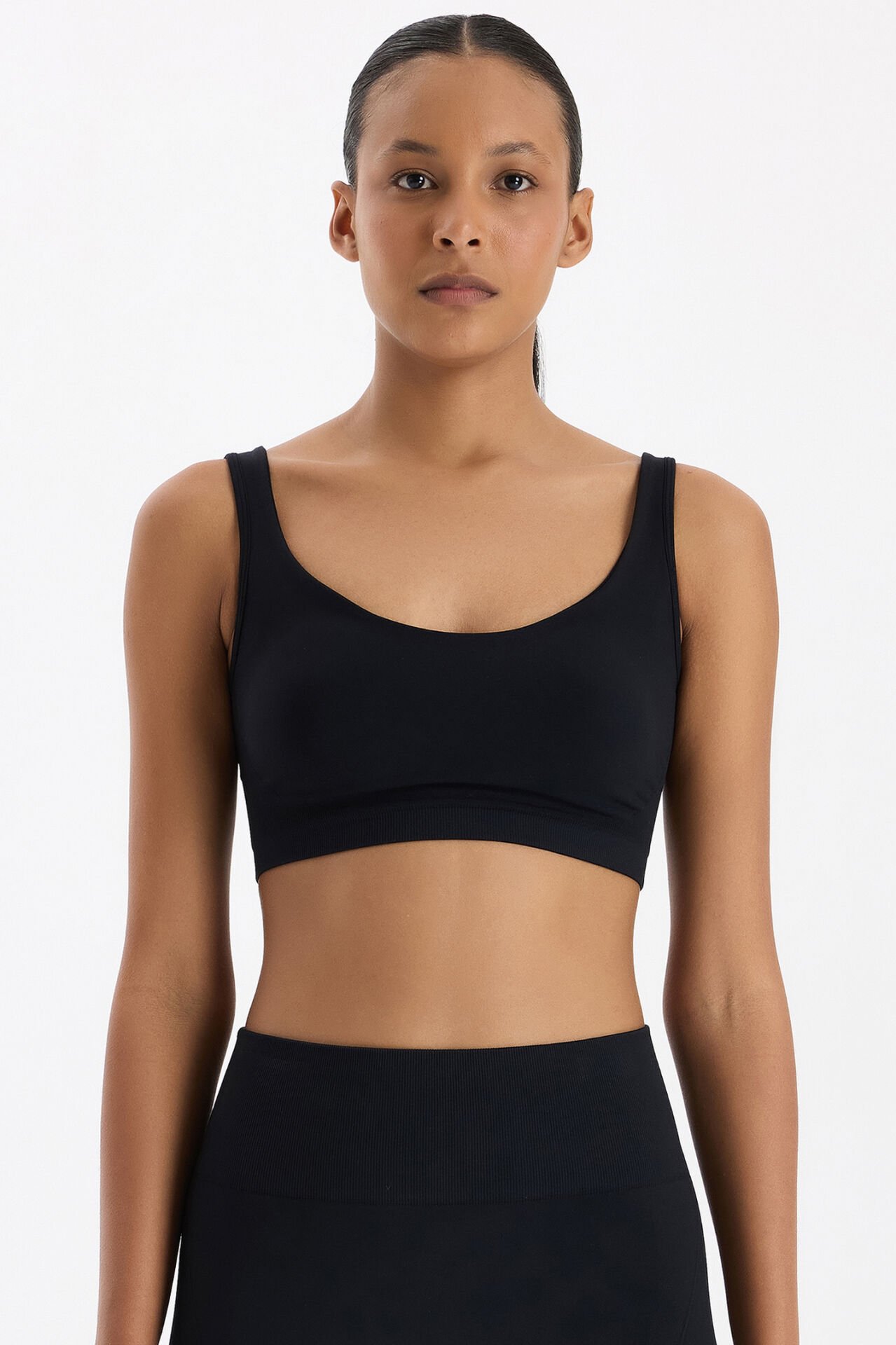 Sırt Askı Detaylı Pedli Sporcu Sütyeni – Siyah, sade ama iddialı duruşu ile her spor gardırobunun temel parçası olmaya aday. Dikişsiz giyim teknolojisi sayesinde adeta ikinci bir ten gibi vücuda uyum sağlar, yoğun antrenmanlarda bile konforu korur.