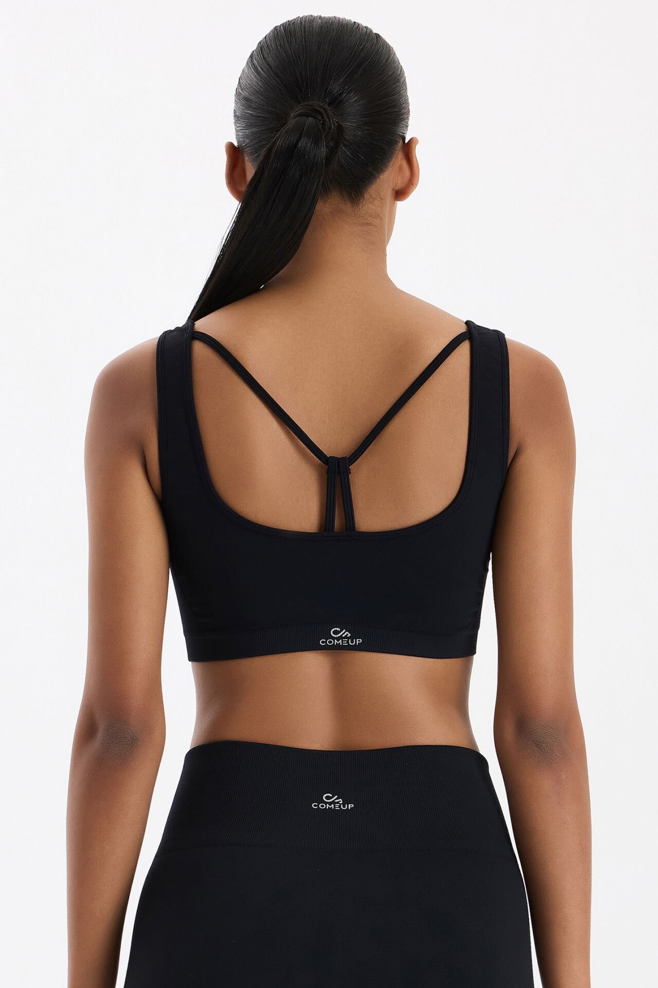 Sırtı Askı Detaylı Pedli Sporcu Sütyeni Siyah