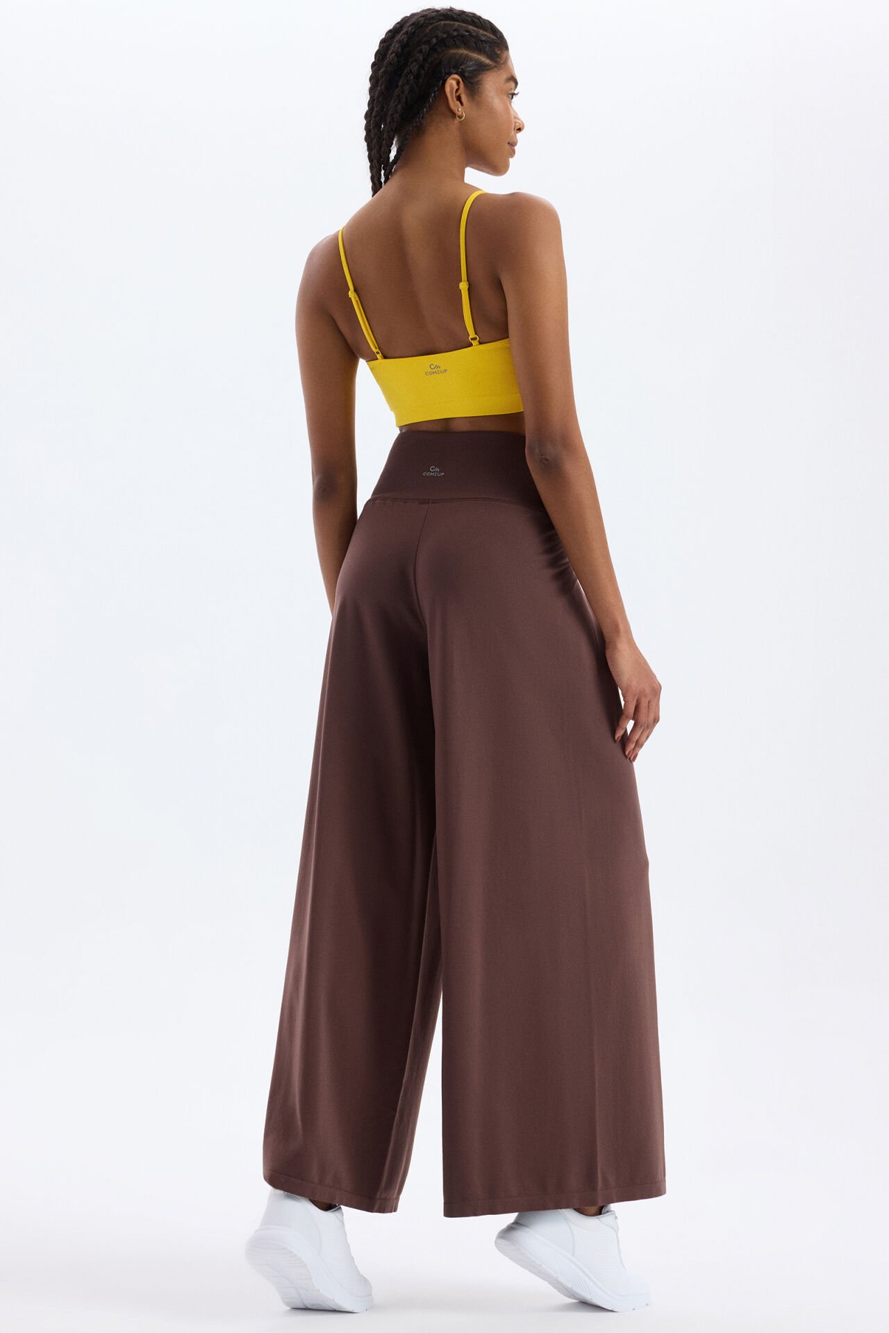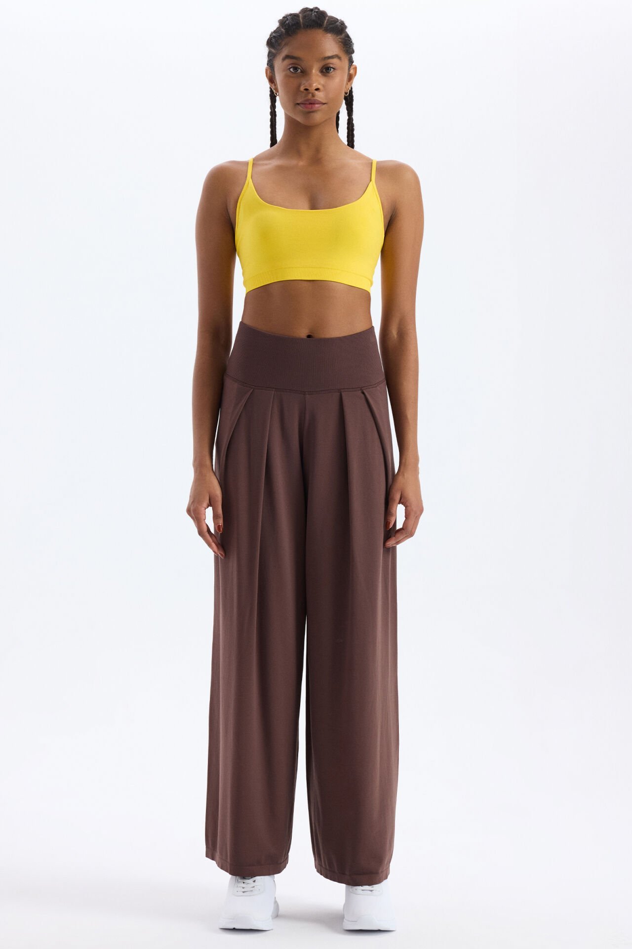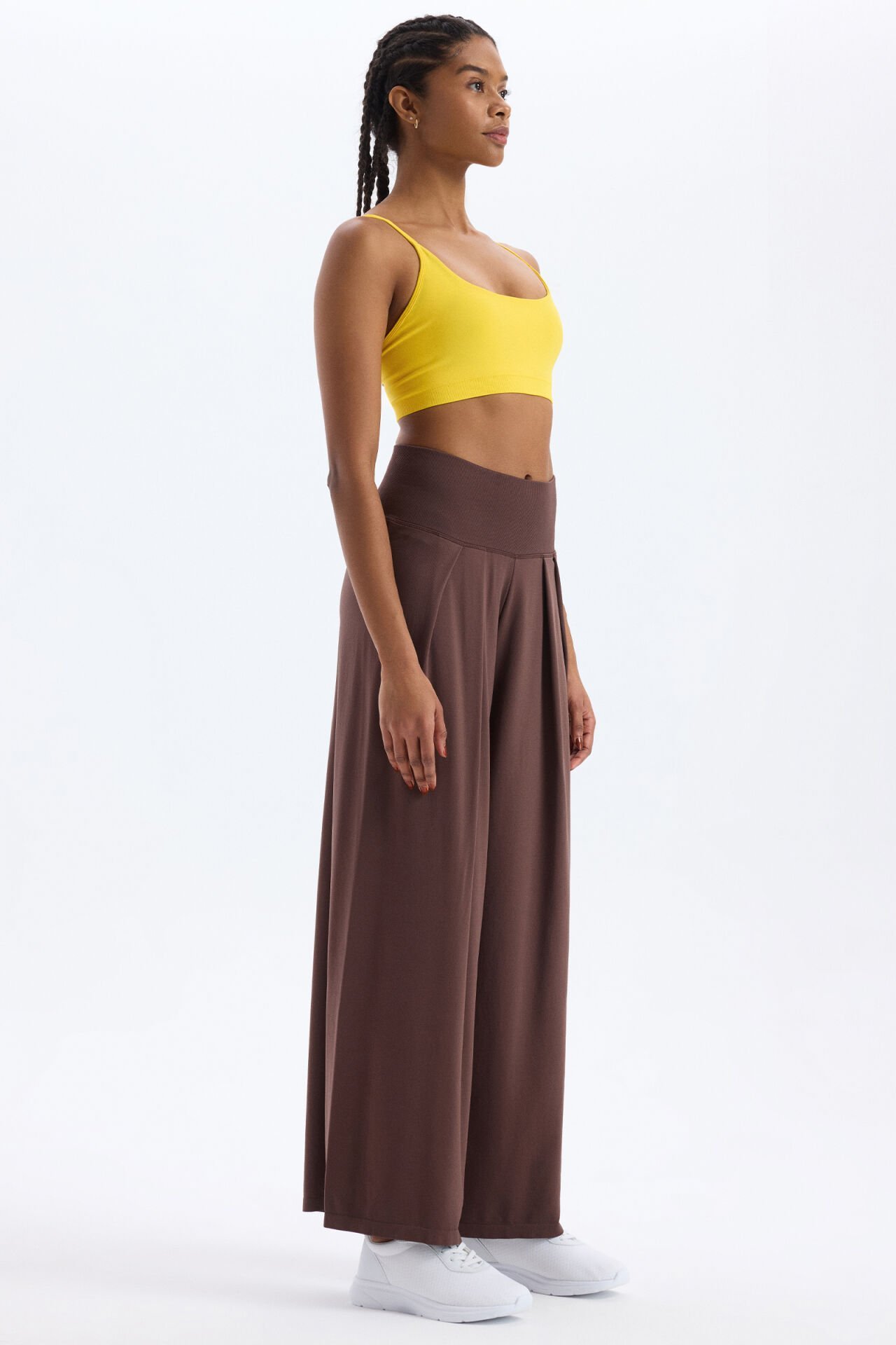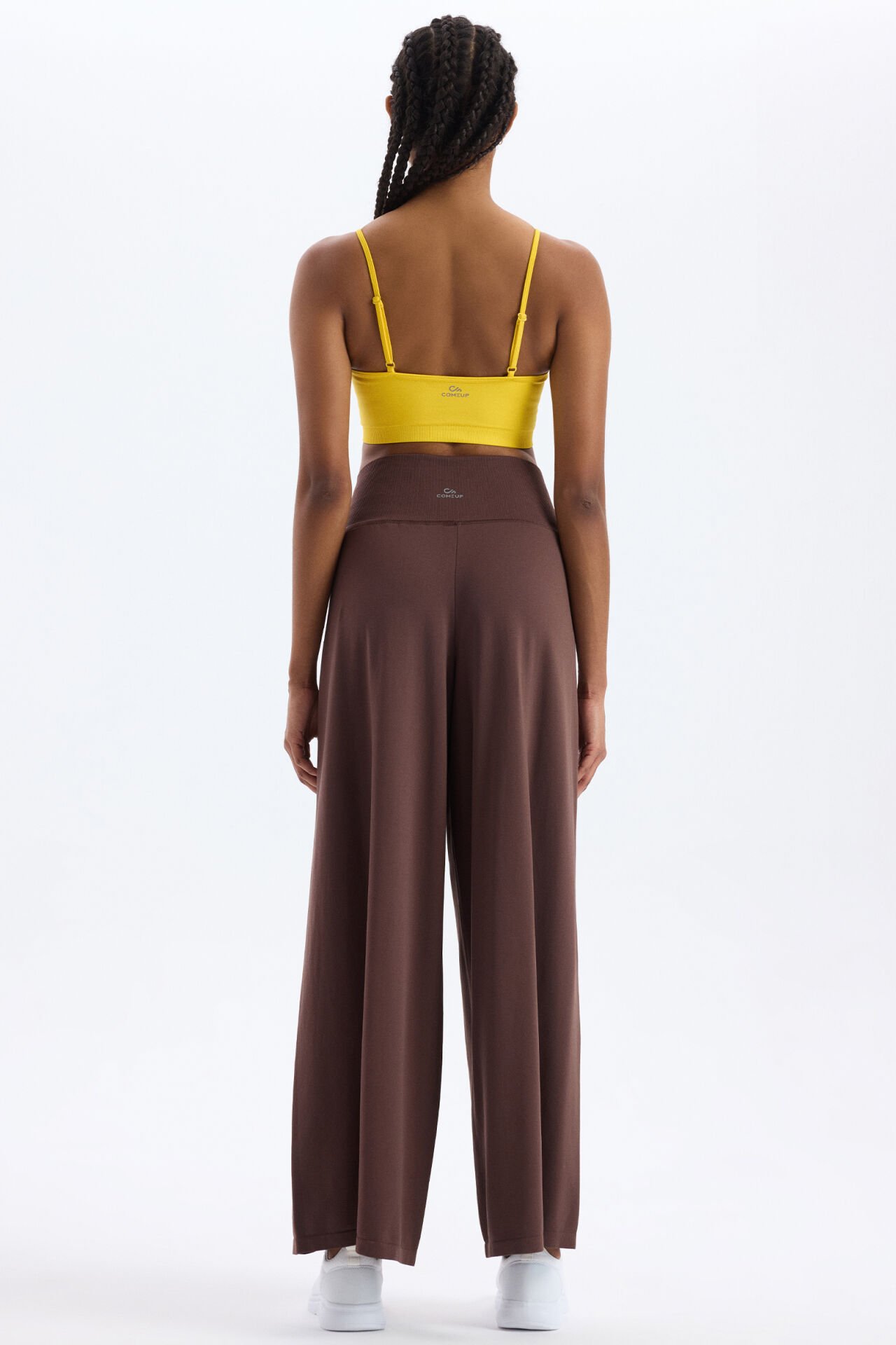 Kakao kahve rengindeki pantolon, şıklığını ve zarif dokusunu her kombinle mükemmel şekilde tamamlar. Ayrıca, ten göstermeyen kumaşı sayesinde kendinizi her an güvende hissedersin. Dikişsiz palazzo pantolon, yaz aylarında şıklık ve rahatlık arayan herkes için mükemmel bir seçenek olacak.