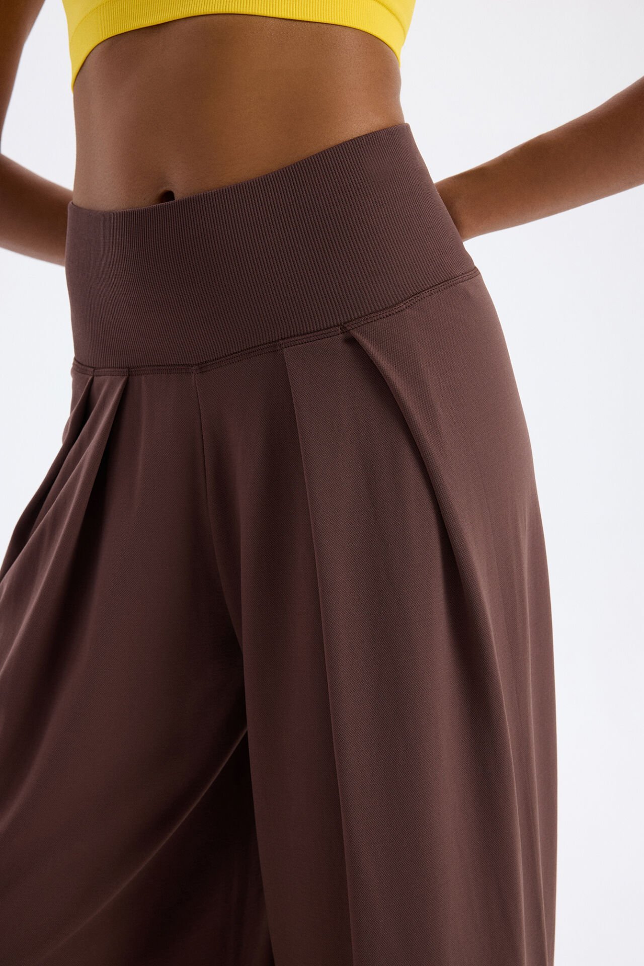 Kakao kahve rengindeki palazzo pantolon, modern tasarımı ve fonksiyonel özellikleriyle aktif yaşam tarzını benimseyenler için ideal bir tercihtir. Nem giderici kumaşı, terin vücutta kalmasını engelleyerek seni kuru tutar ve hızla kurur, böylece sıcak günlerde bile konforlu bir kullanım sağlar. Silver plus teknolojisi, ter kokusunu engelleyerek uzun süre taze ve ferah bir his yaratır.