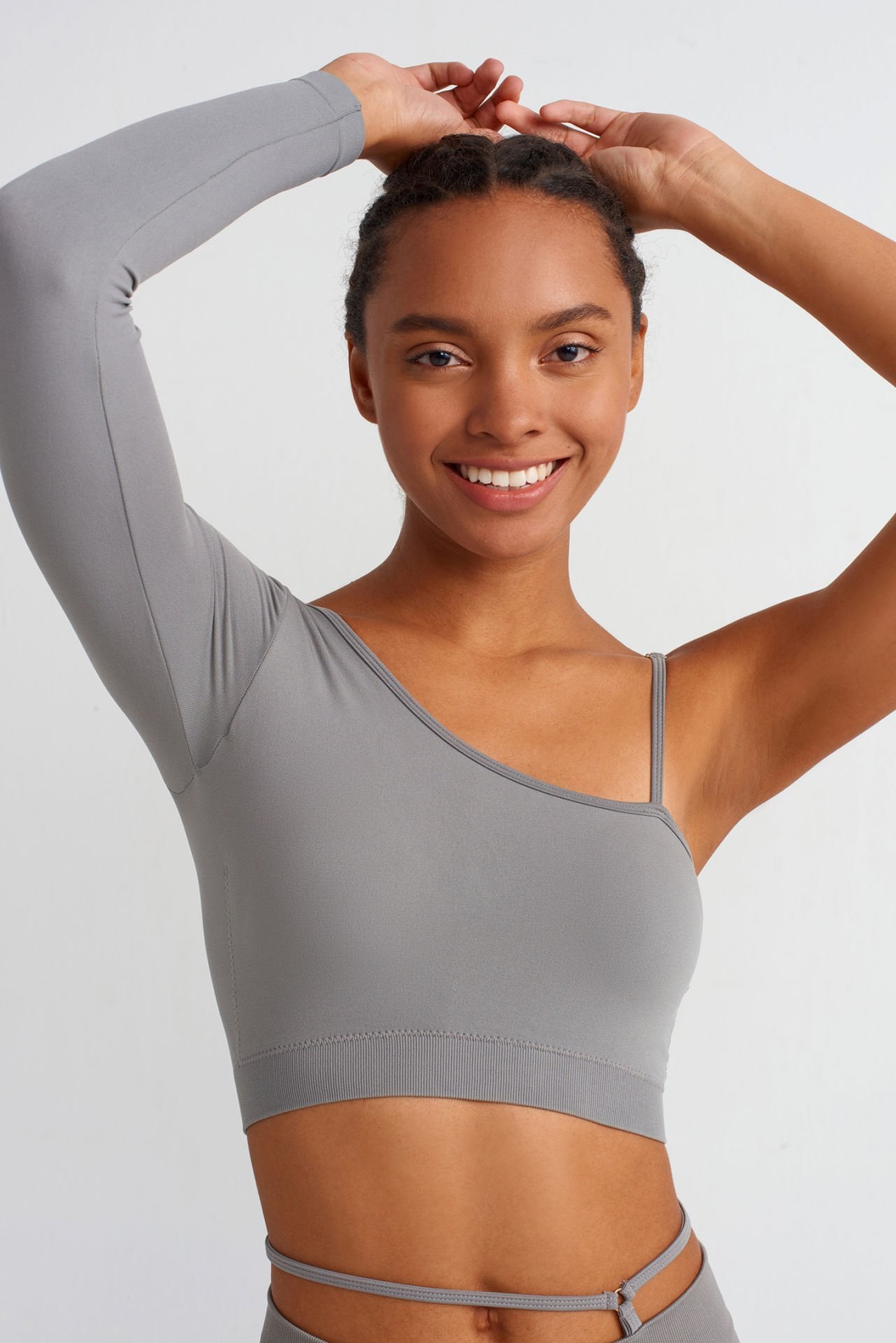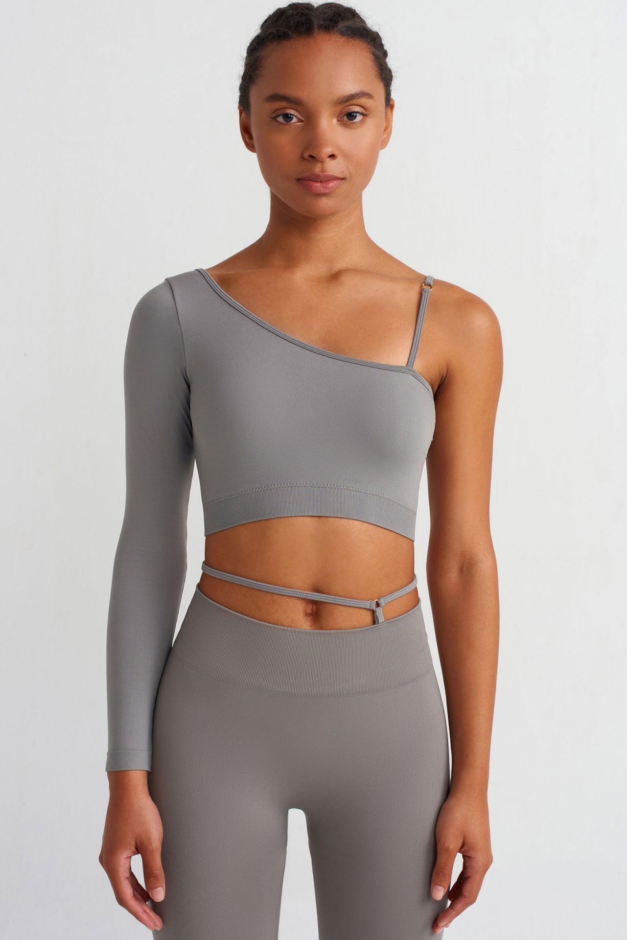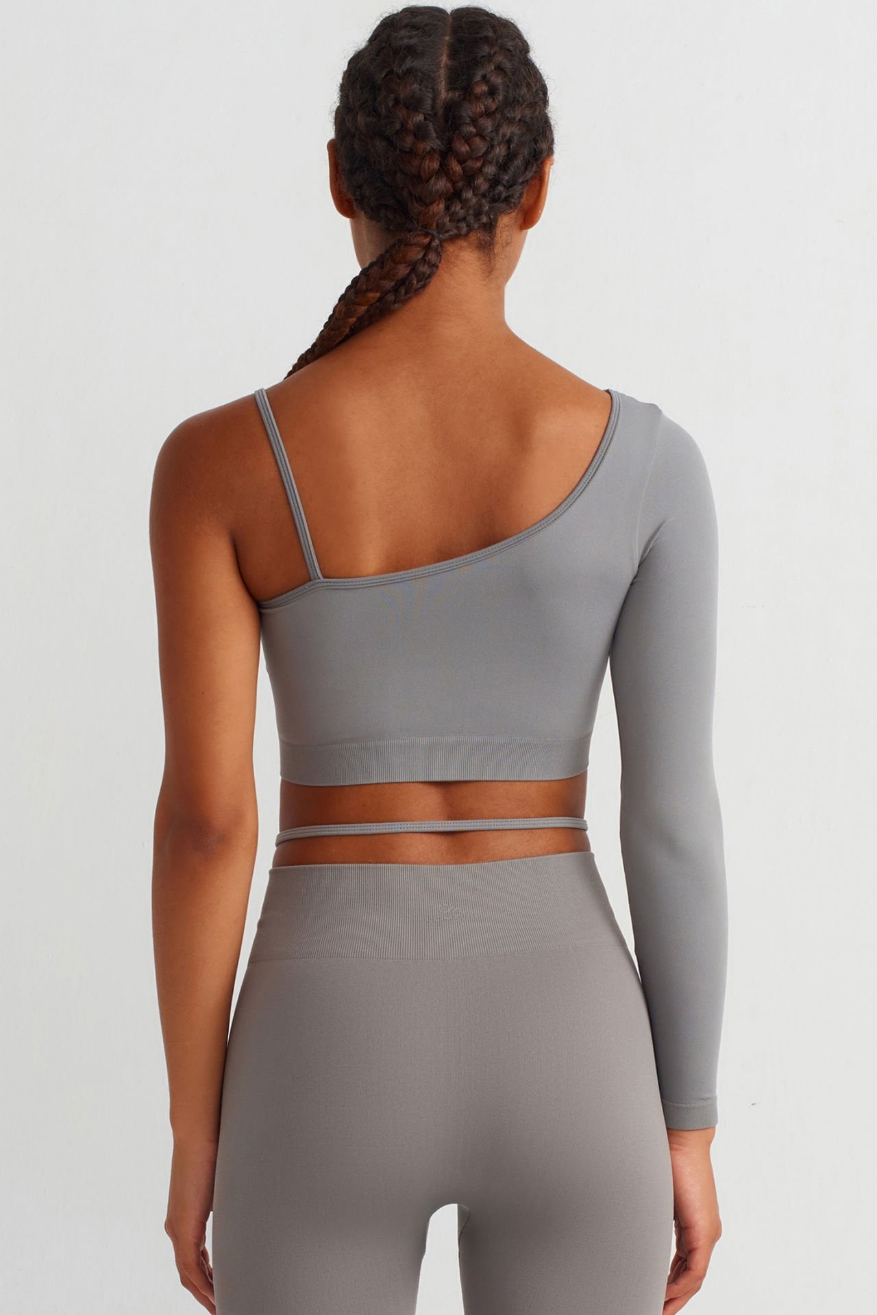 Tek Kollu Omuz Askılı Crop Top Çöl Grisi