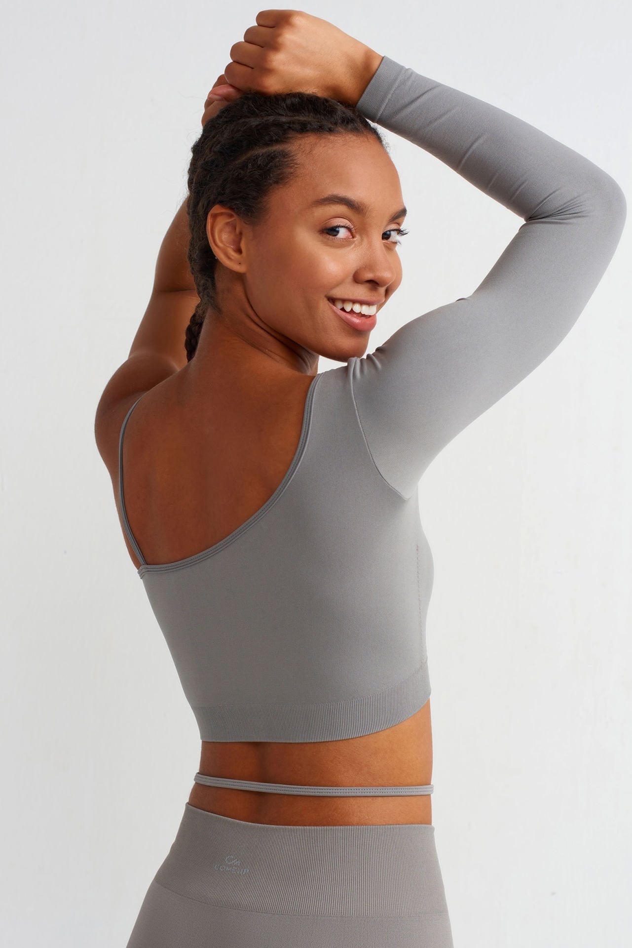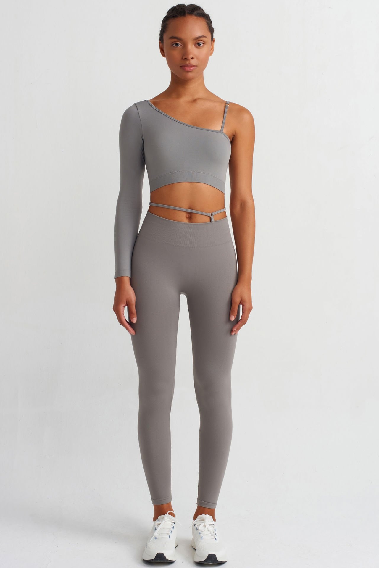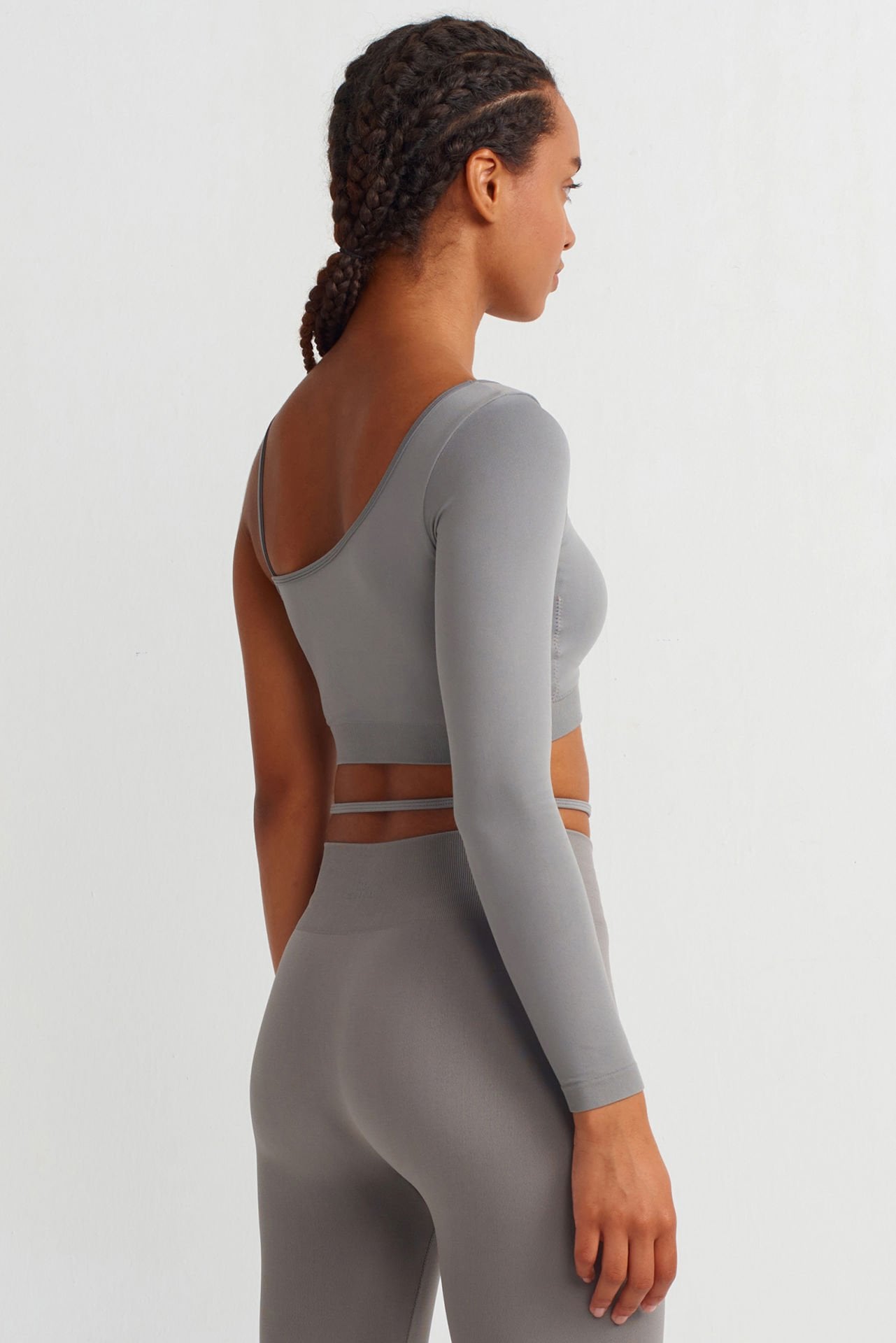 Tek Kollu Omuz Askılı Crop Top Çöl Grisi