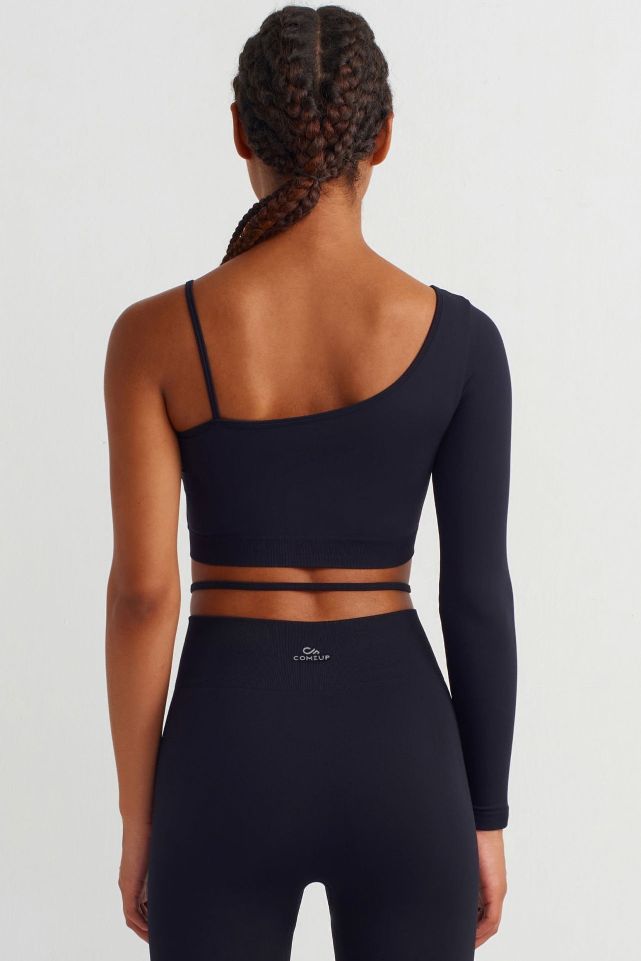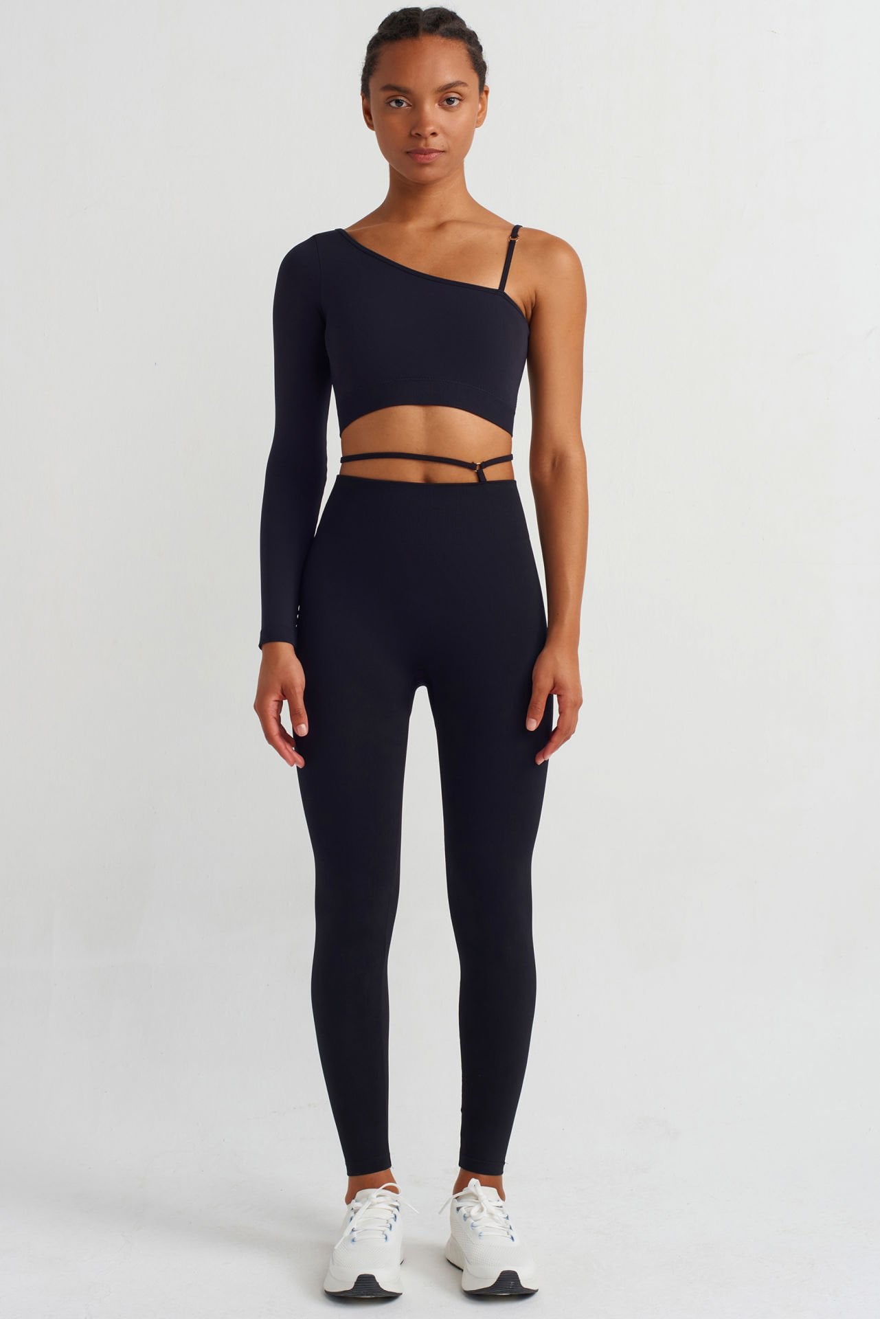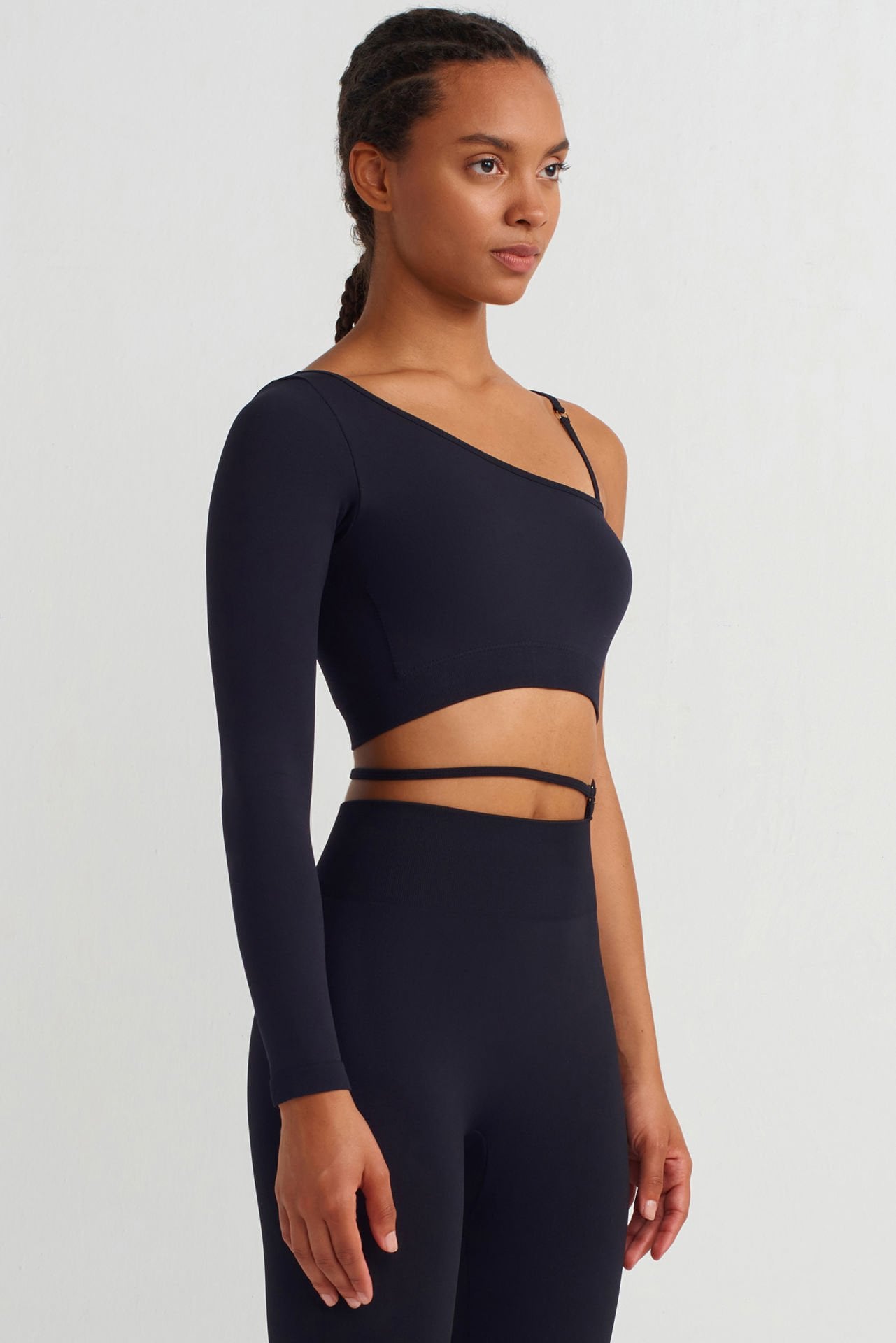 Tek Kollu Omuz Askılı Crop Top Siyah