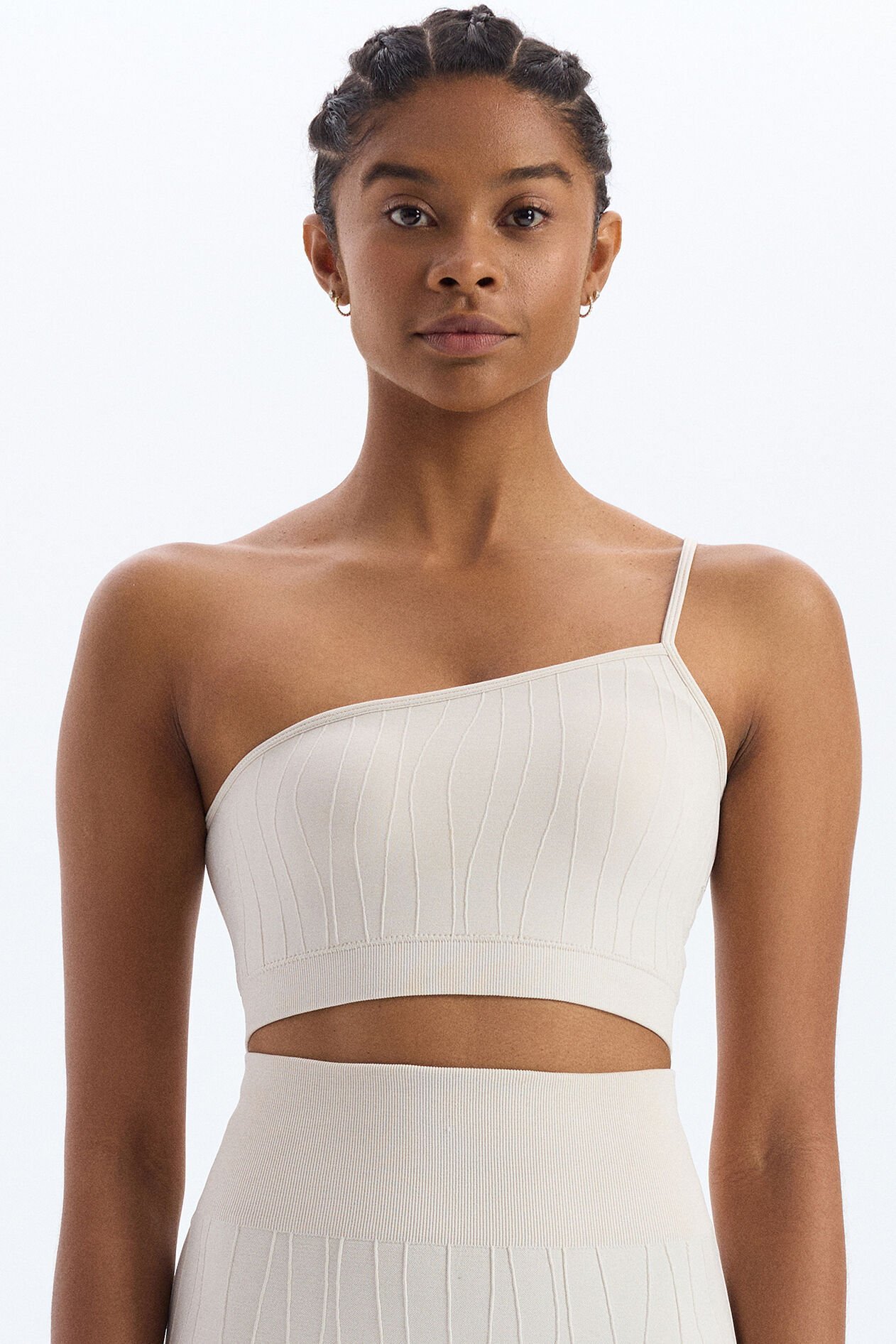 Tek Omuz Askılı Asimetrik Sporcu Bra Titan Beyazı