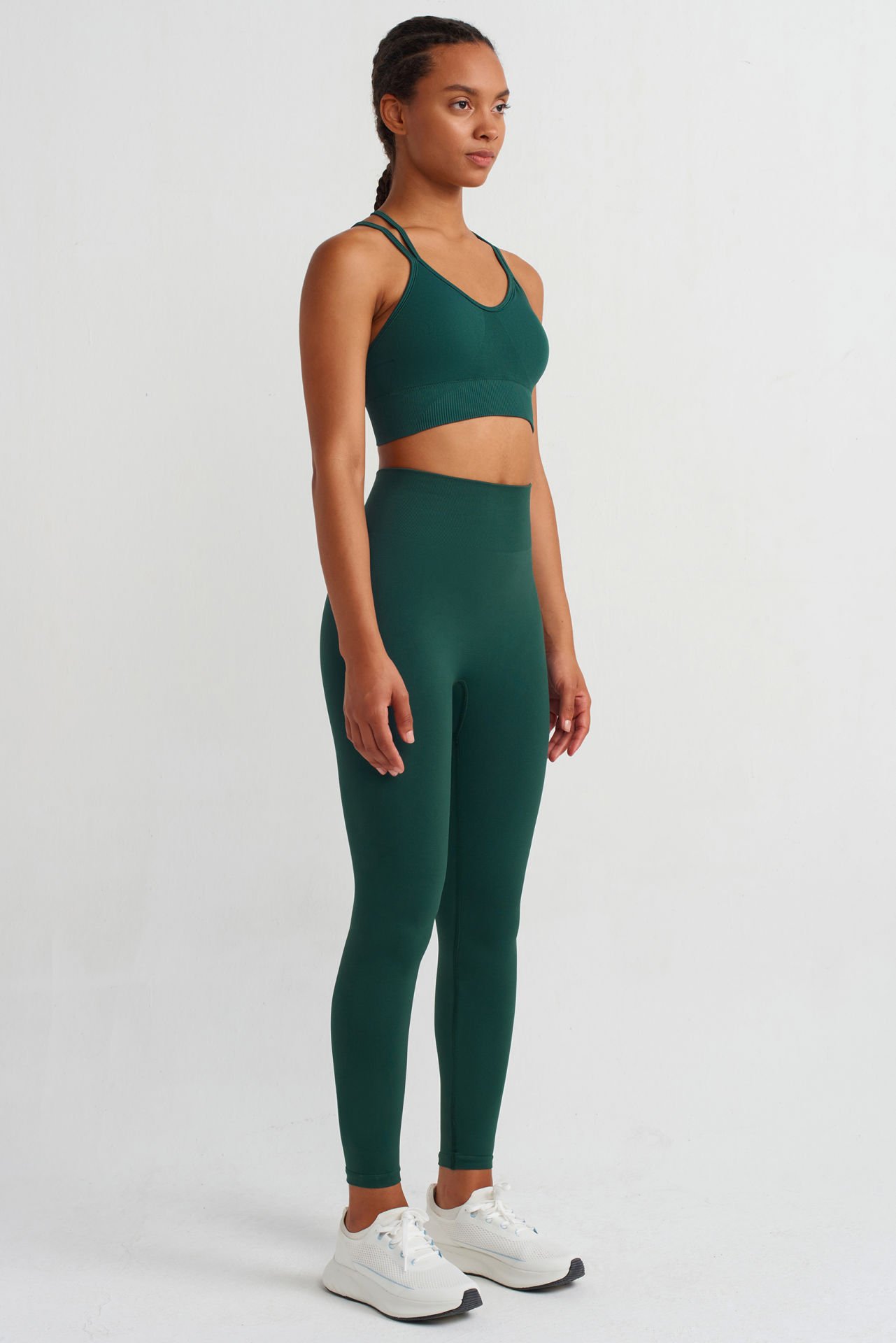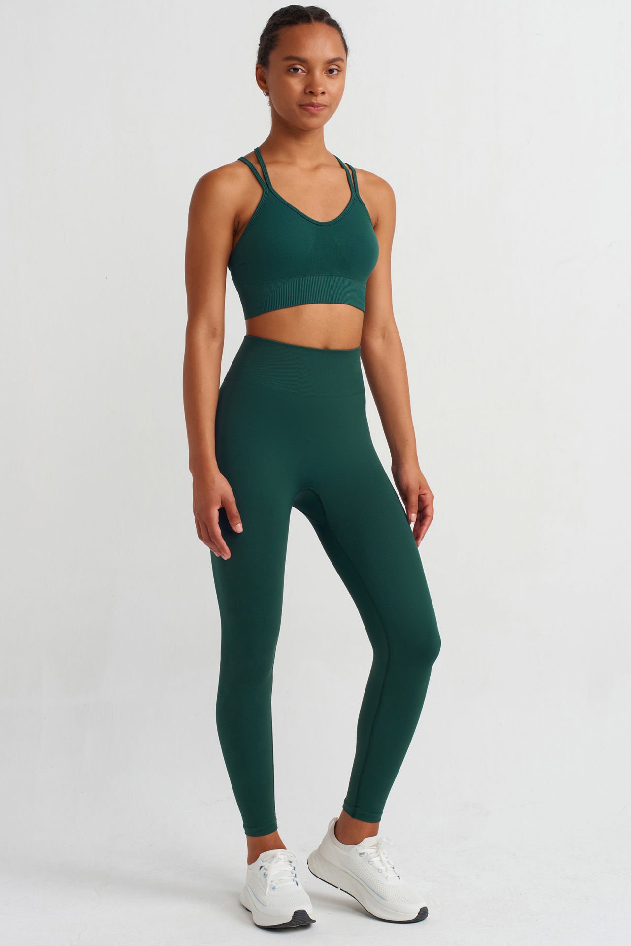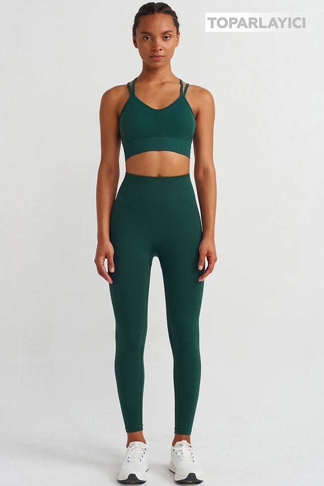 Formunu ve kusursuz görünümünü destekleyen teknik kumaşı ile çam yeşili toparlayıcı tayt, sporun dinamizmini ve stilini bir araya getiriyor. Yüksek bel tasarıma sahip toparlayıcı taytın esnek kumaşı, vücut hatlarını mükemmel bir şekilde sararak destek sunar.