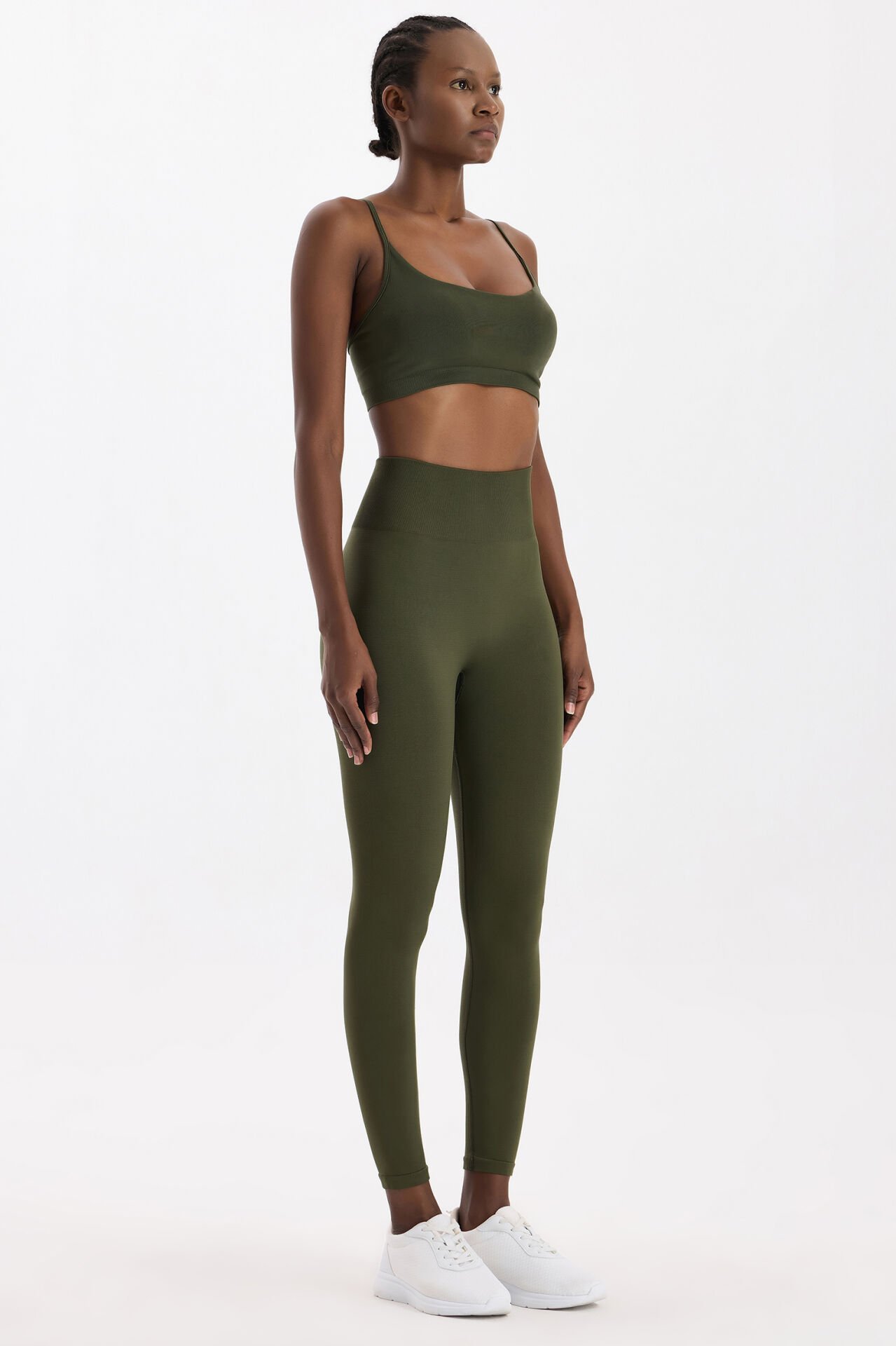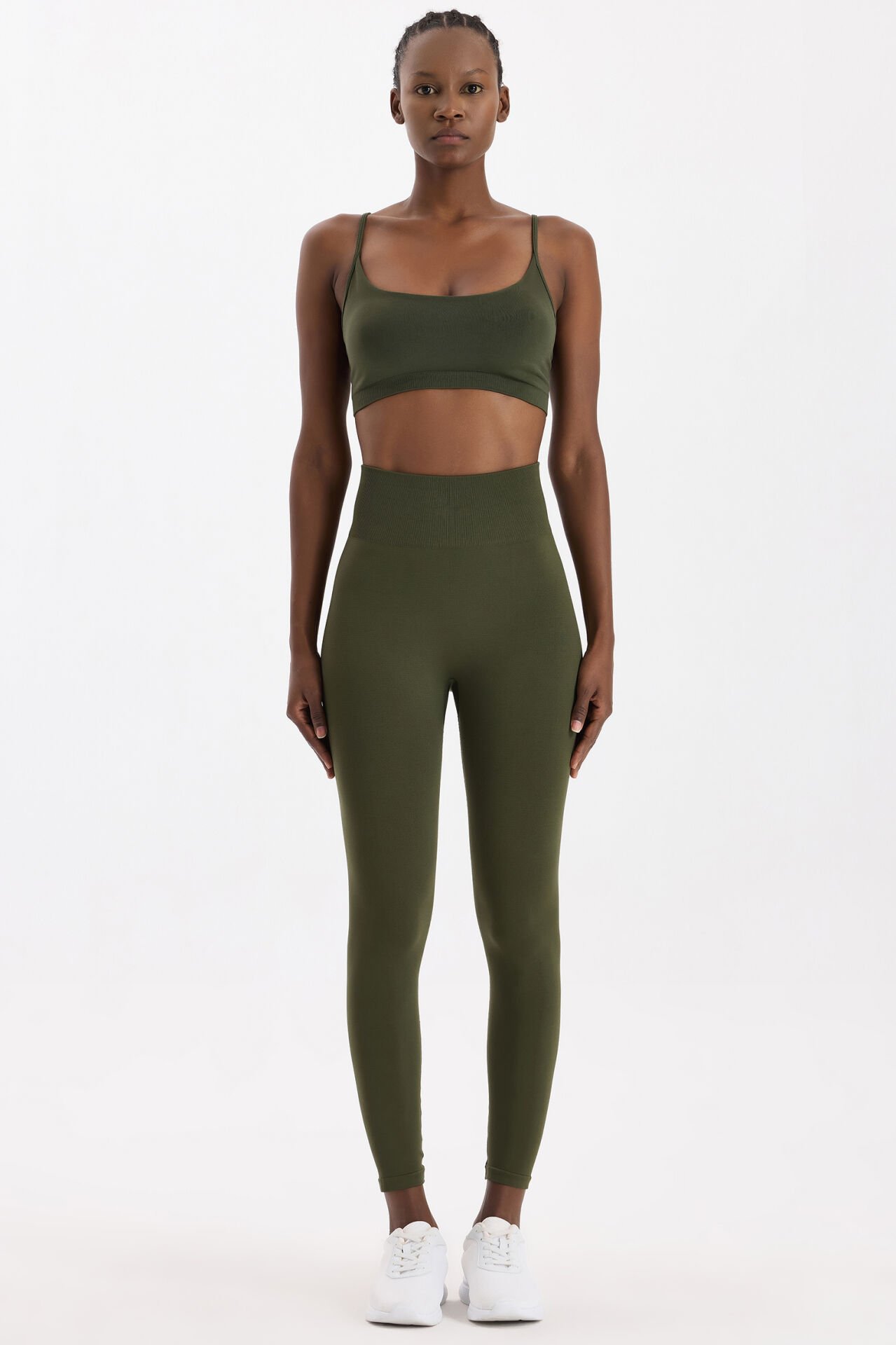 Bilek boyundaki kesimi ve sade çizgileriyle bu tayt, spor şıklığını günlük stile taşır. Koyu yaprak yeşili rengi, doğadan ilham alan güçlü bir görünüm yaratır; spor salonunda veya şehirde modern ve zarif bir duruş kazandırır.