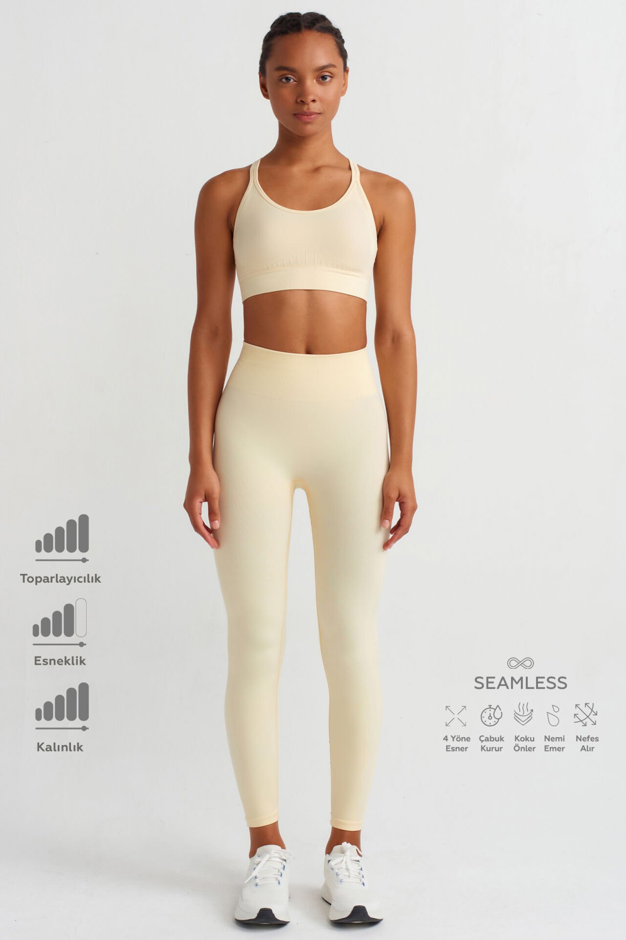 Güne enerjik bir başlangıç yapman için tasarlanan toparlayıcı tayt, soft sarı rengi ile enerjik ve canlı bir seçenek.
