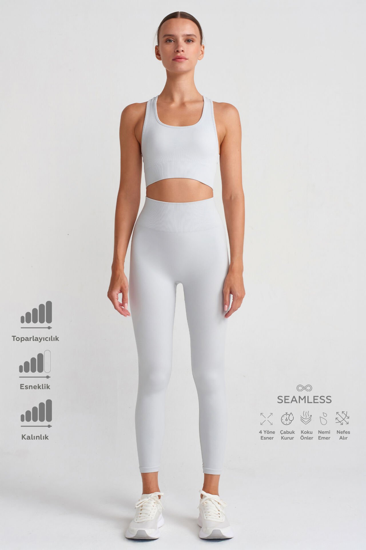 · Spor sonrası ter kokusunu engelleyen antibakteriyel kumaş ile üretilmiştir.