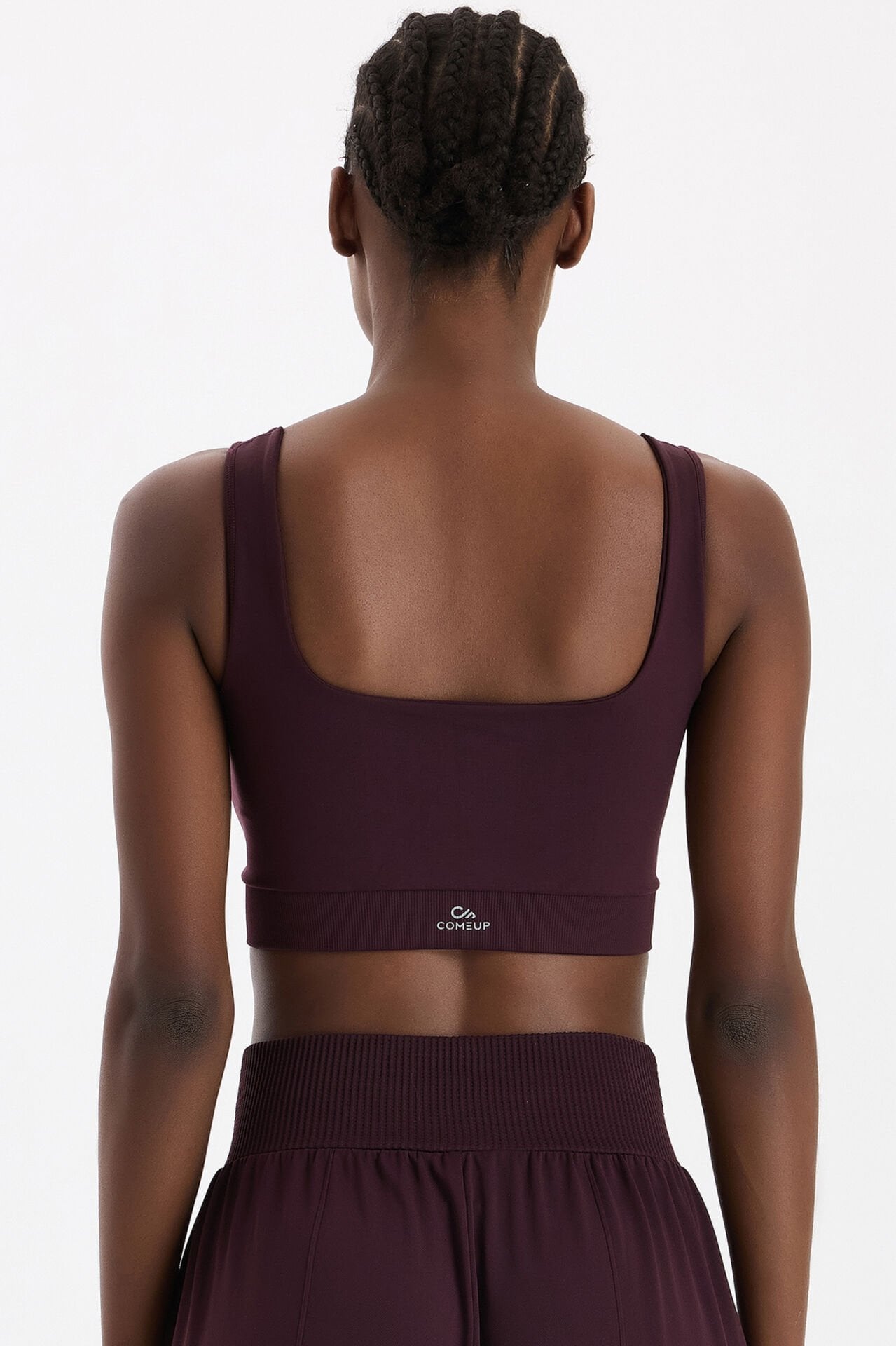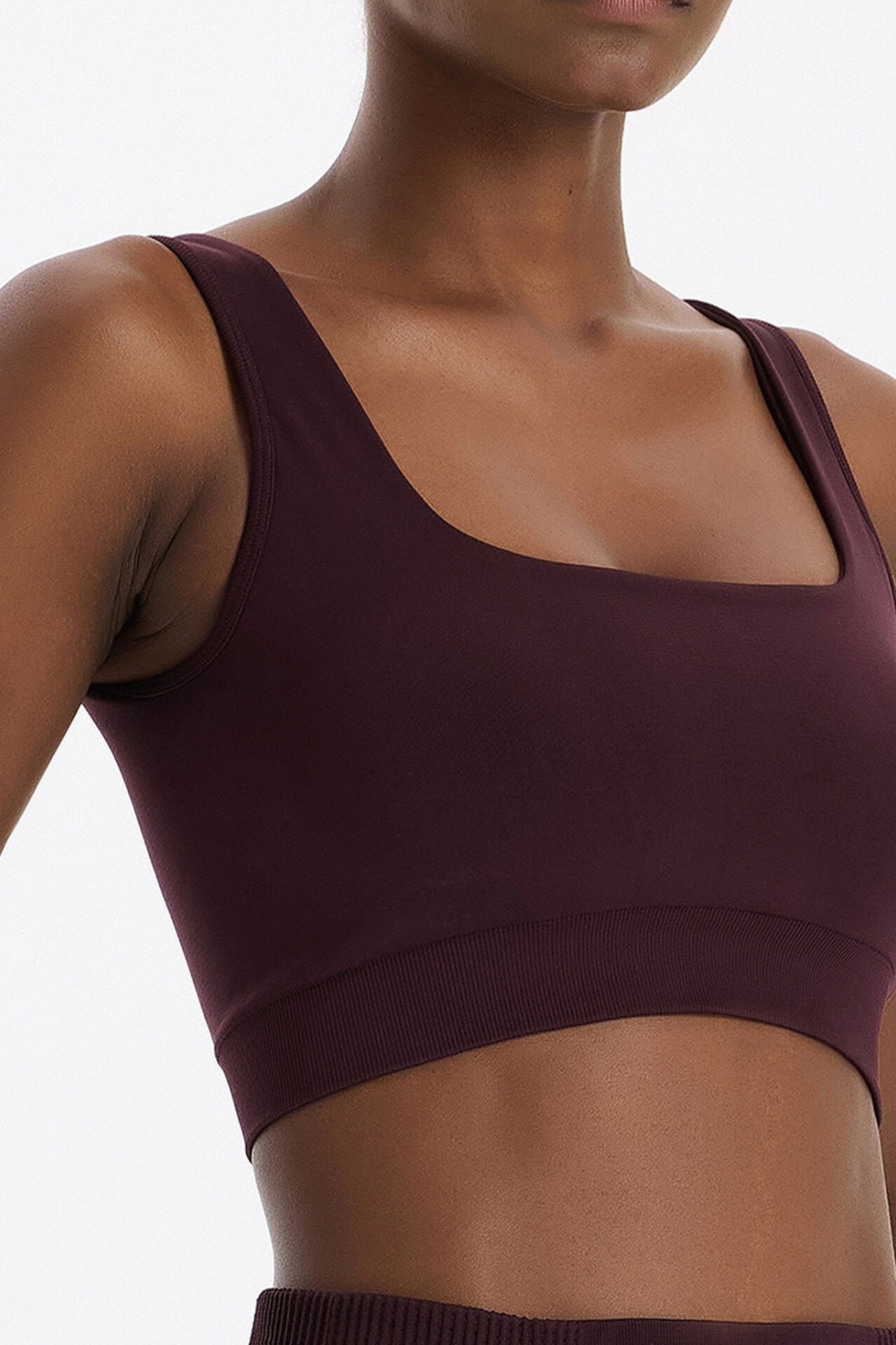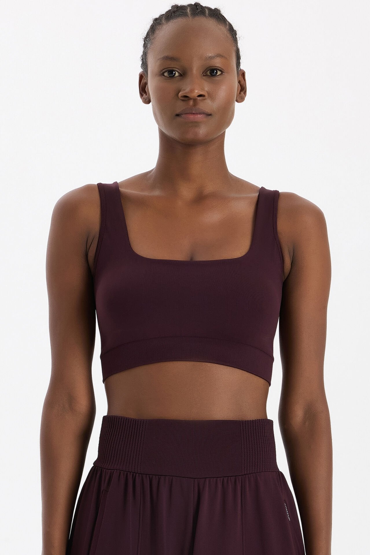 U yaka Kalın Askılı Pedli Sporcu Sütyeni Burgundy