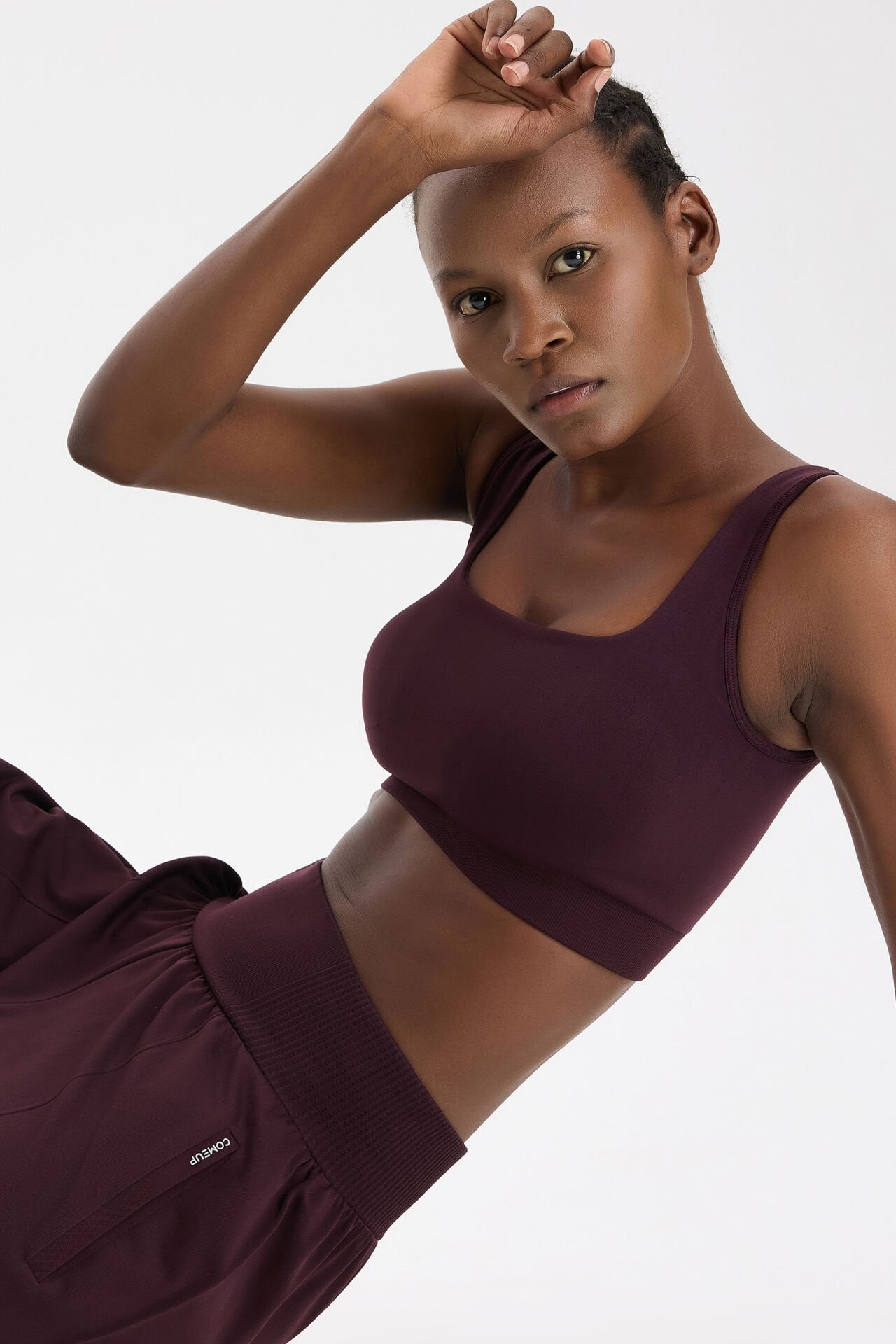 Şıklığı, dayanıklılığı ve konforu bir arada sunan bu burgundy sporcu sütyeni, hem spor salonunda hem de günlük tarzında güçlü bir duruş sergiler.