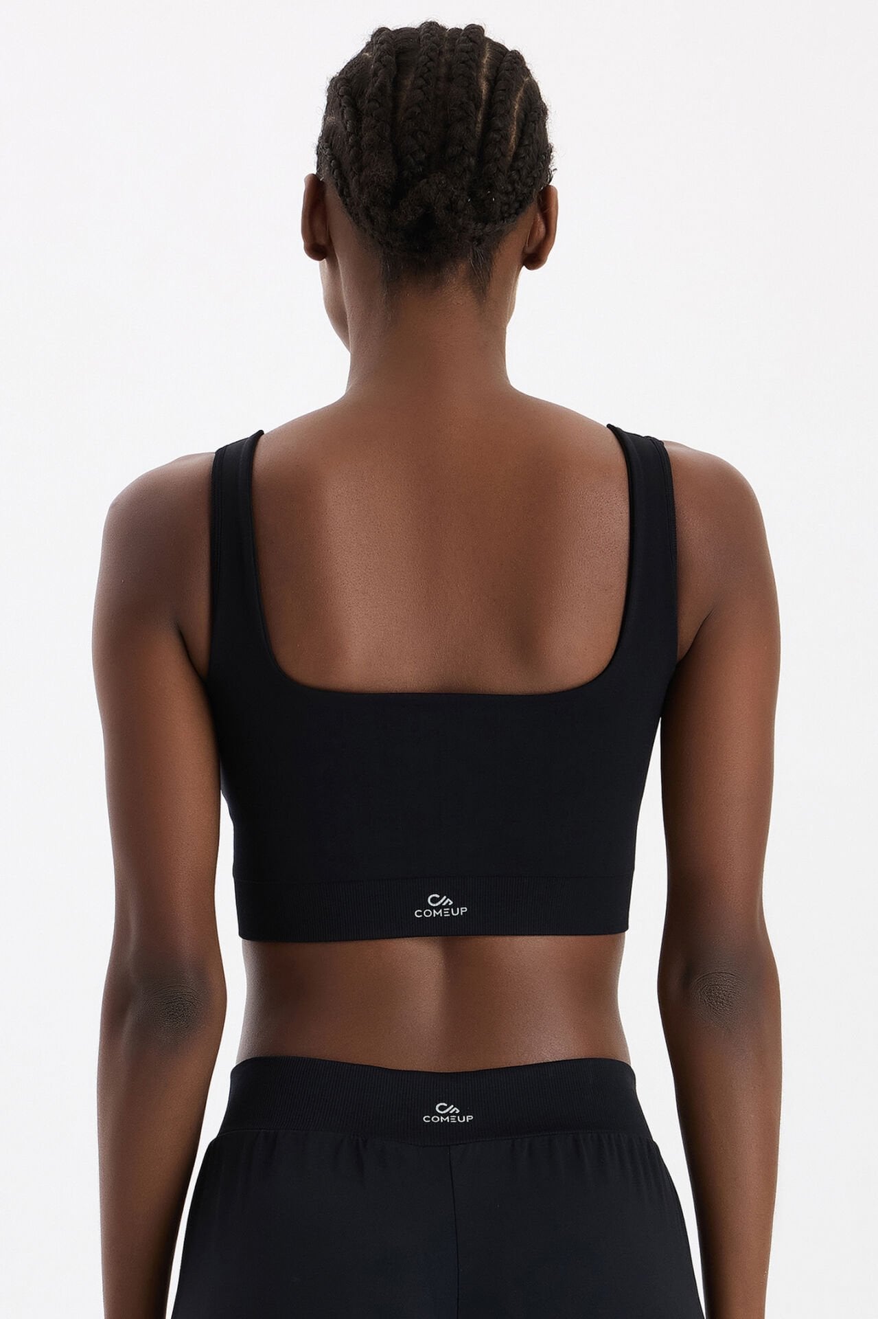 U yaka Kalın Askılı Pedli Sporcu Sütyeni Siyah