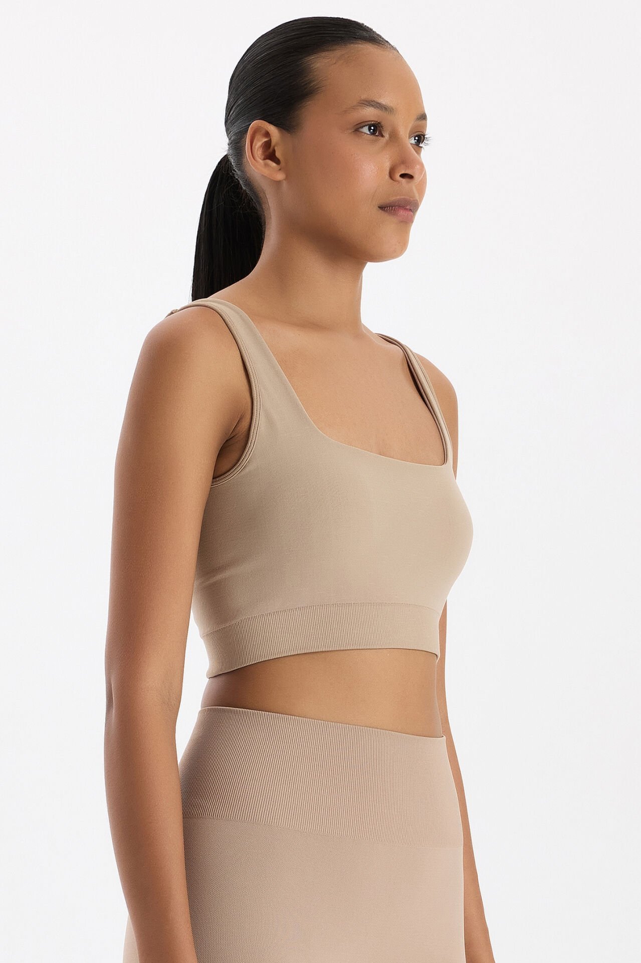 Dikişsiz üretim teknolojisi, cilde temas eden bölgelerde sürtünmeyi önler, tahriş riskini azaltır. Hem sade hem zarif görünümüyle bu vizon sporcu sütyeni, spor kombinlerinden günlük stillerine kadar gardırobunun vazgeçilmez konfor parçası olacak.