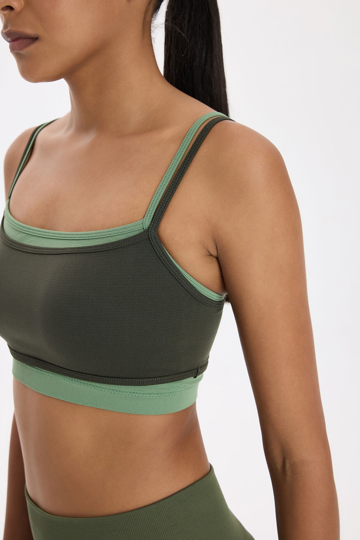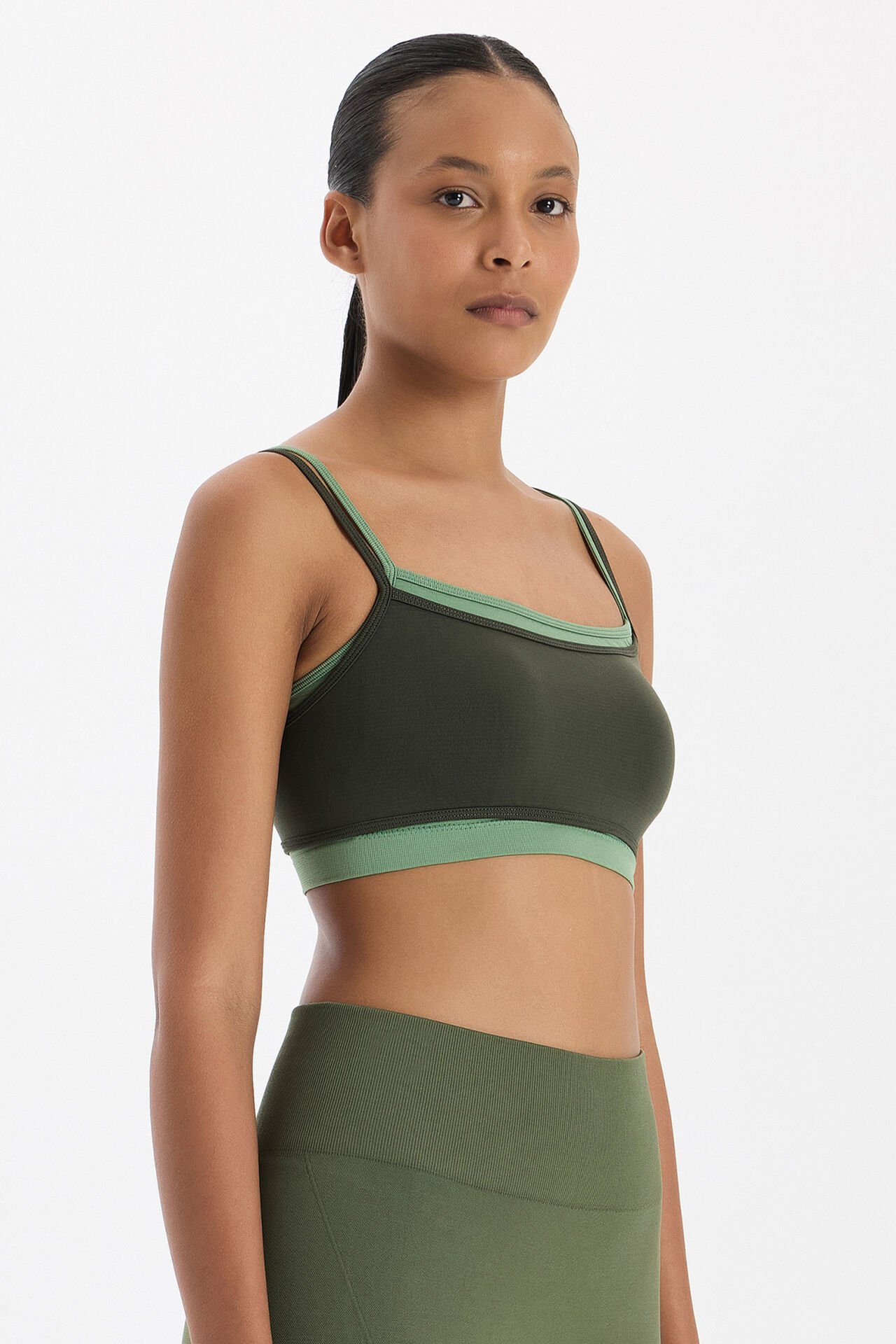 Üst Üste Geçmeli Pedli Spor Bra Koyu Yaprak Yeşili/Çağla