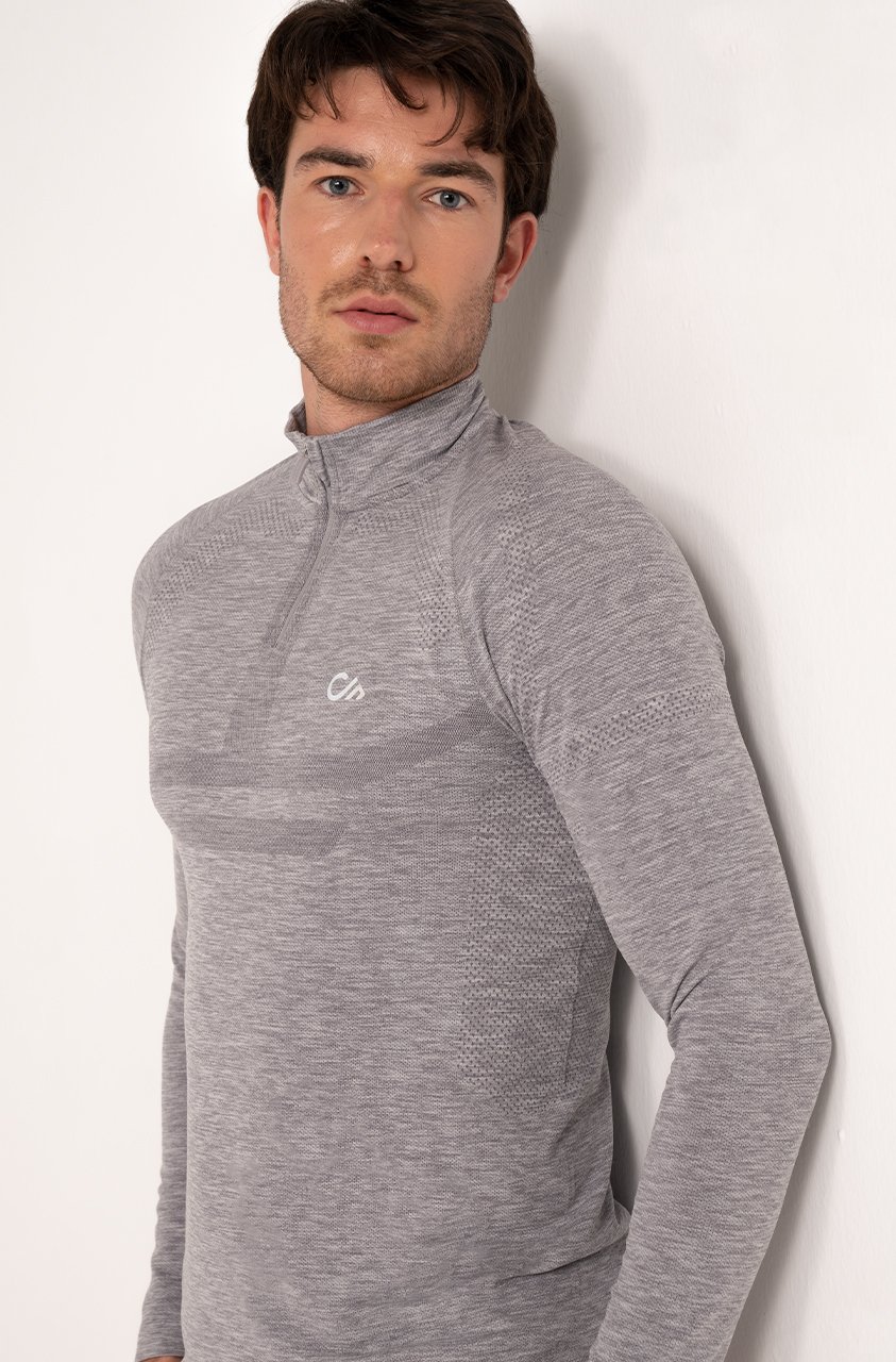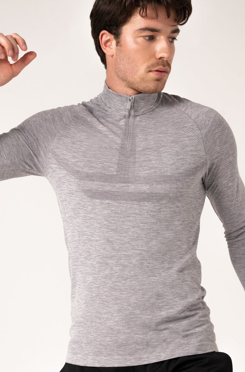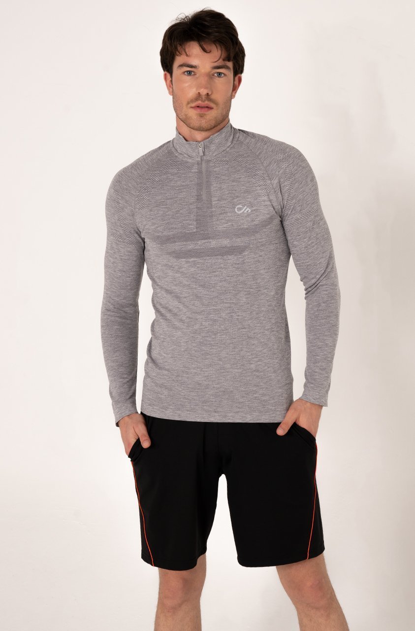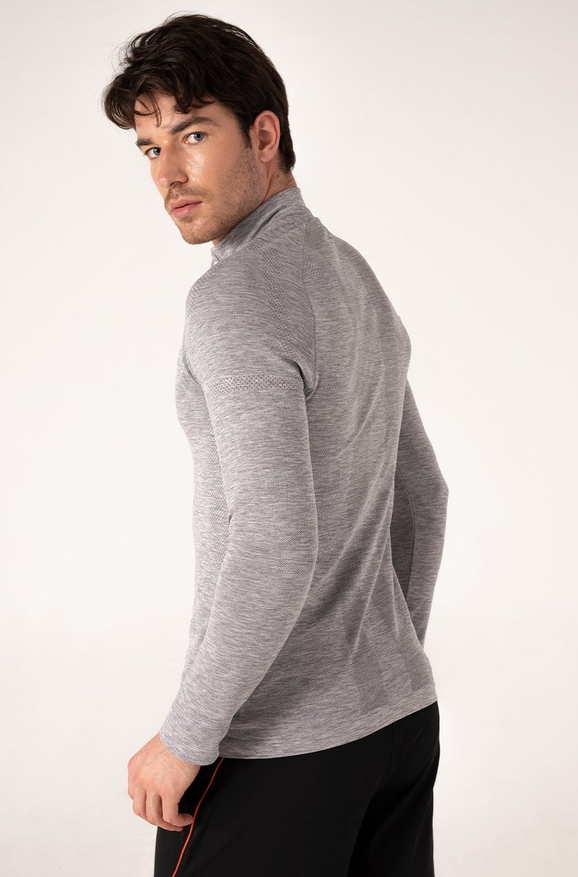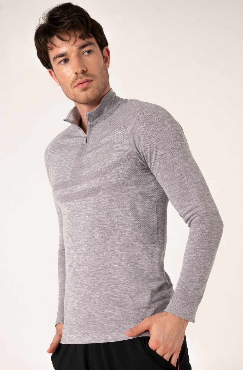 Uzun Kollu Fermuarlı Erkek Üst Gri Melanj