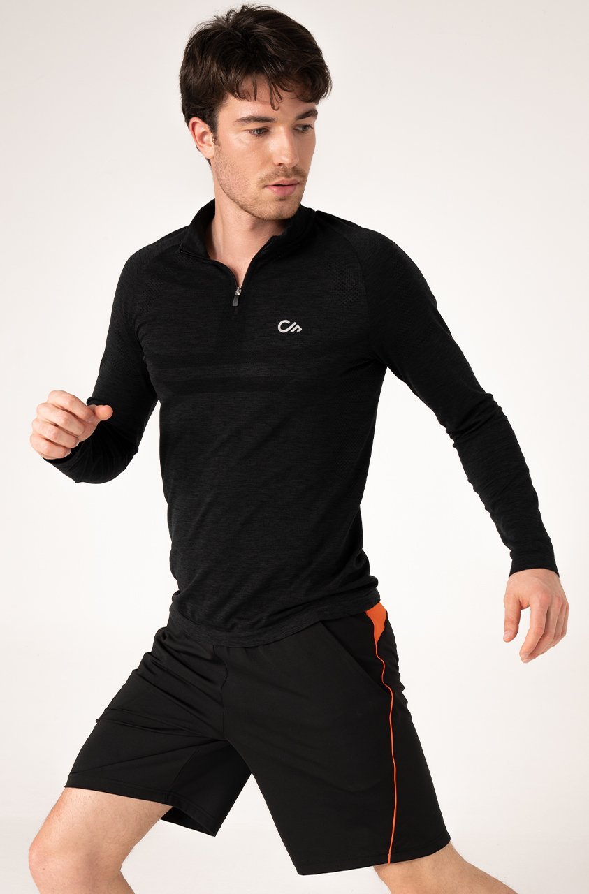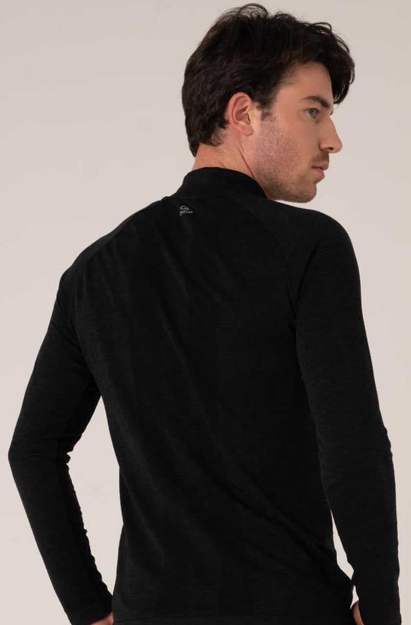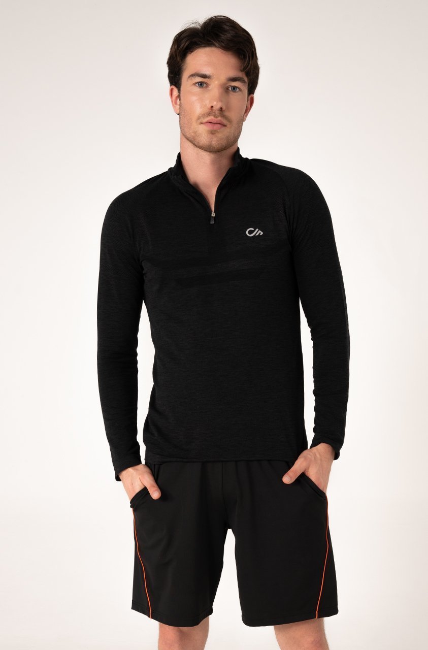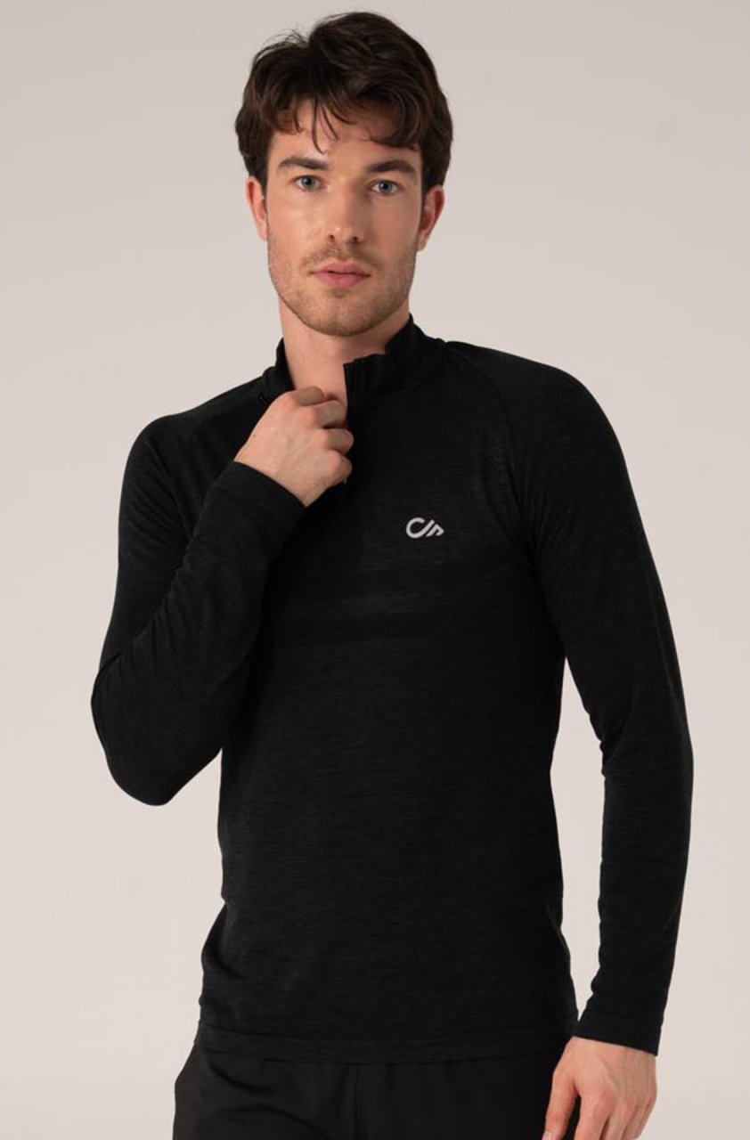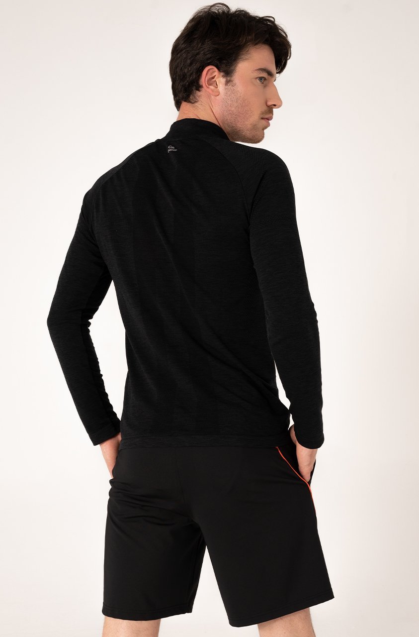 Uzun Kollu Fermuarlı Erkek Üst Siyah Melanj