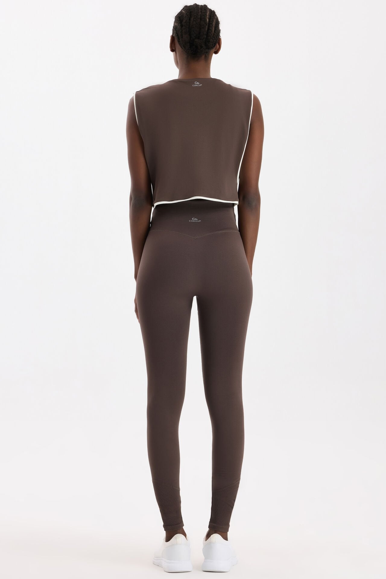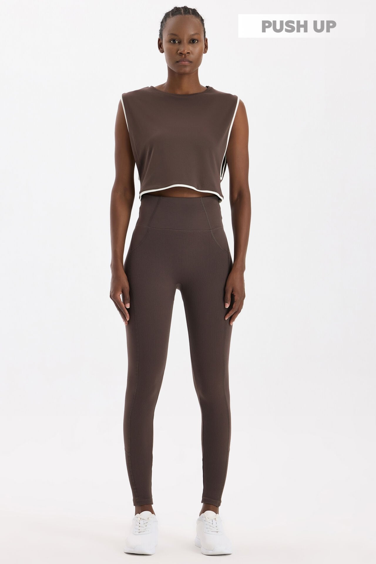 Yüksek Bel Dikiş Detaylı Push Up Tayt Kakao Dansı