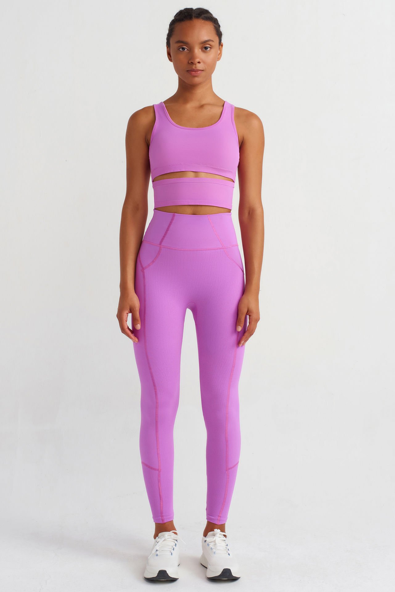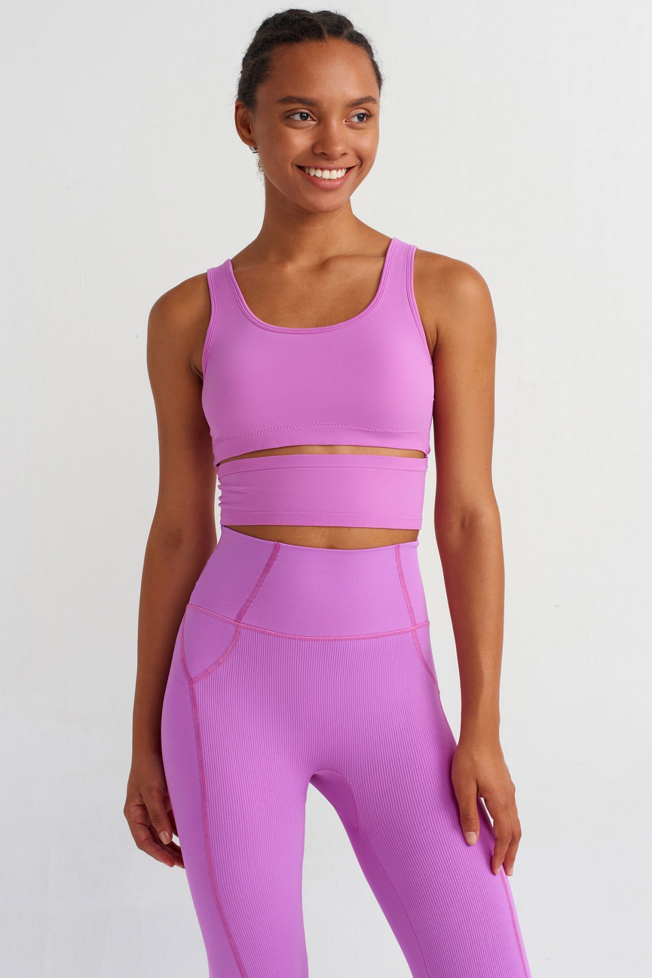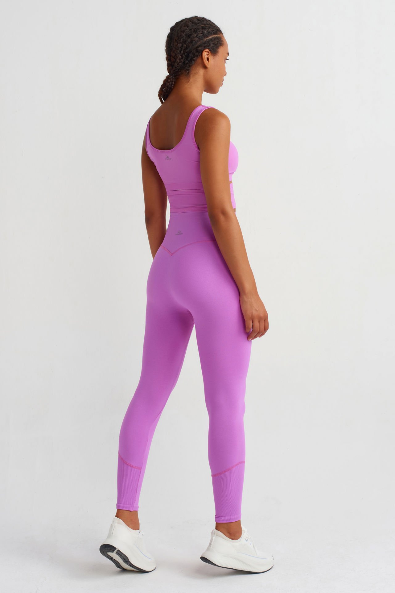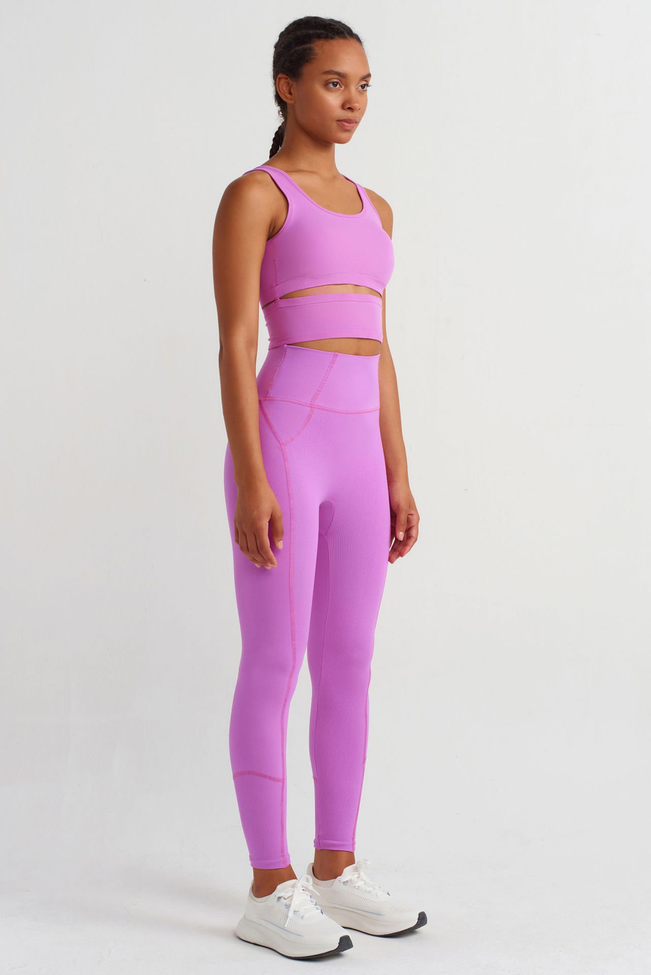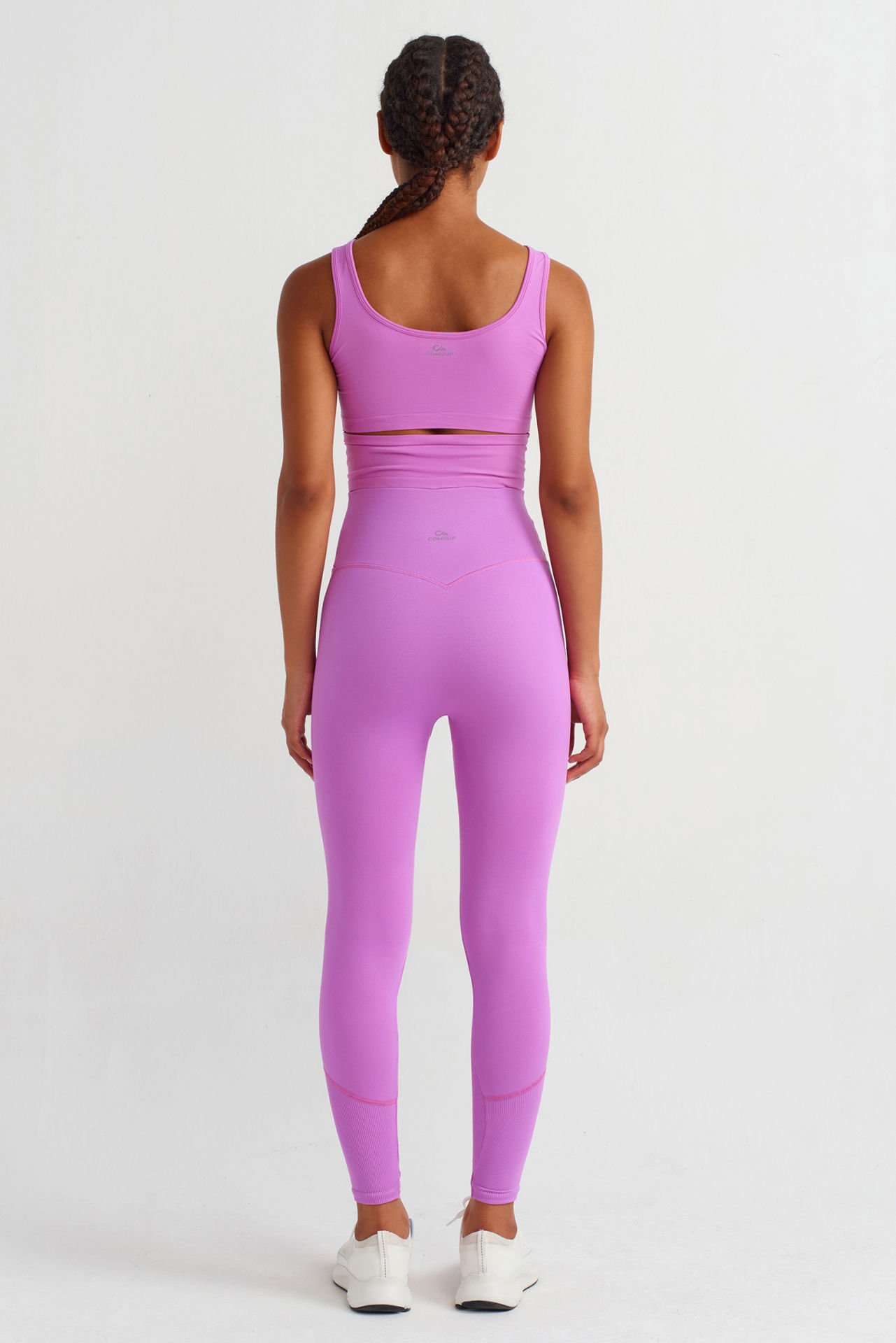 Yüksek Bel Dikiş Detaylı Push Up Tayt Orkide Pembe