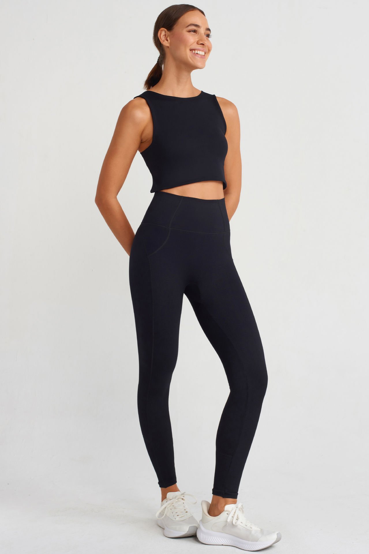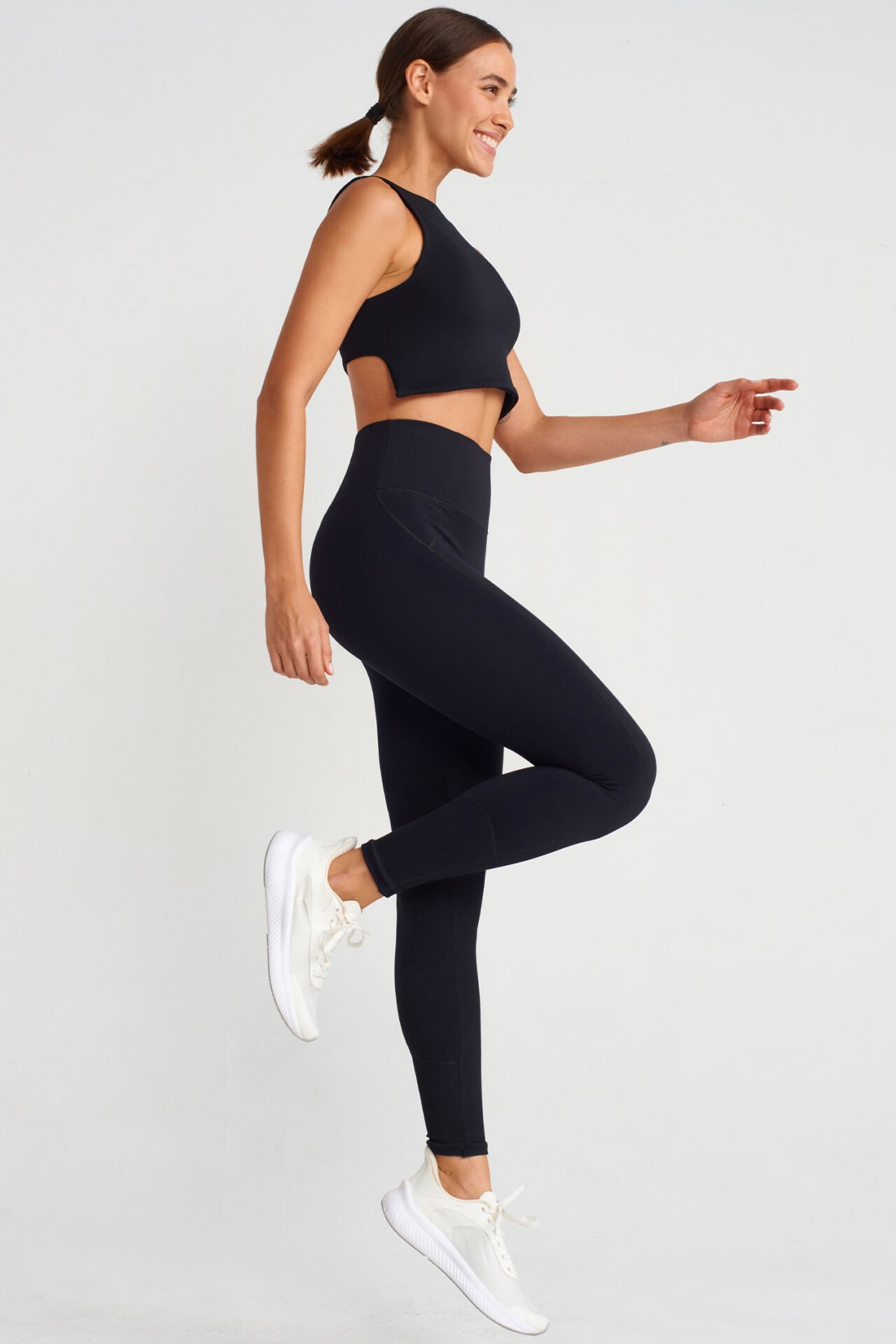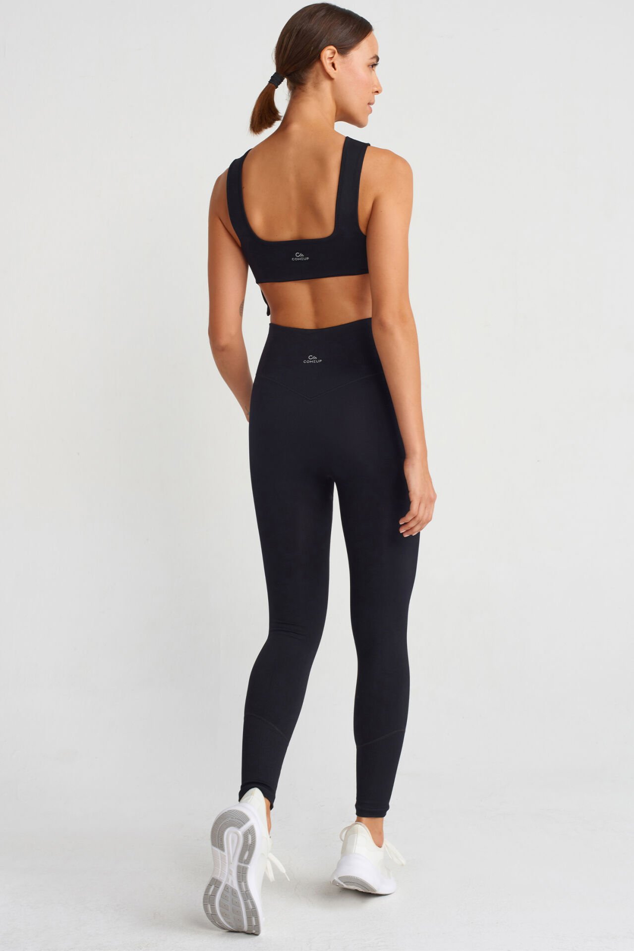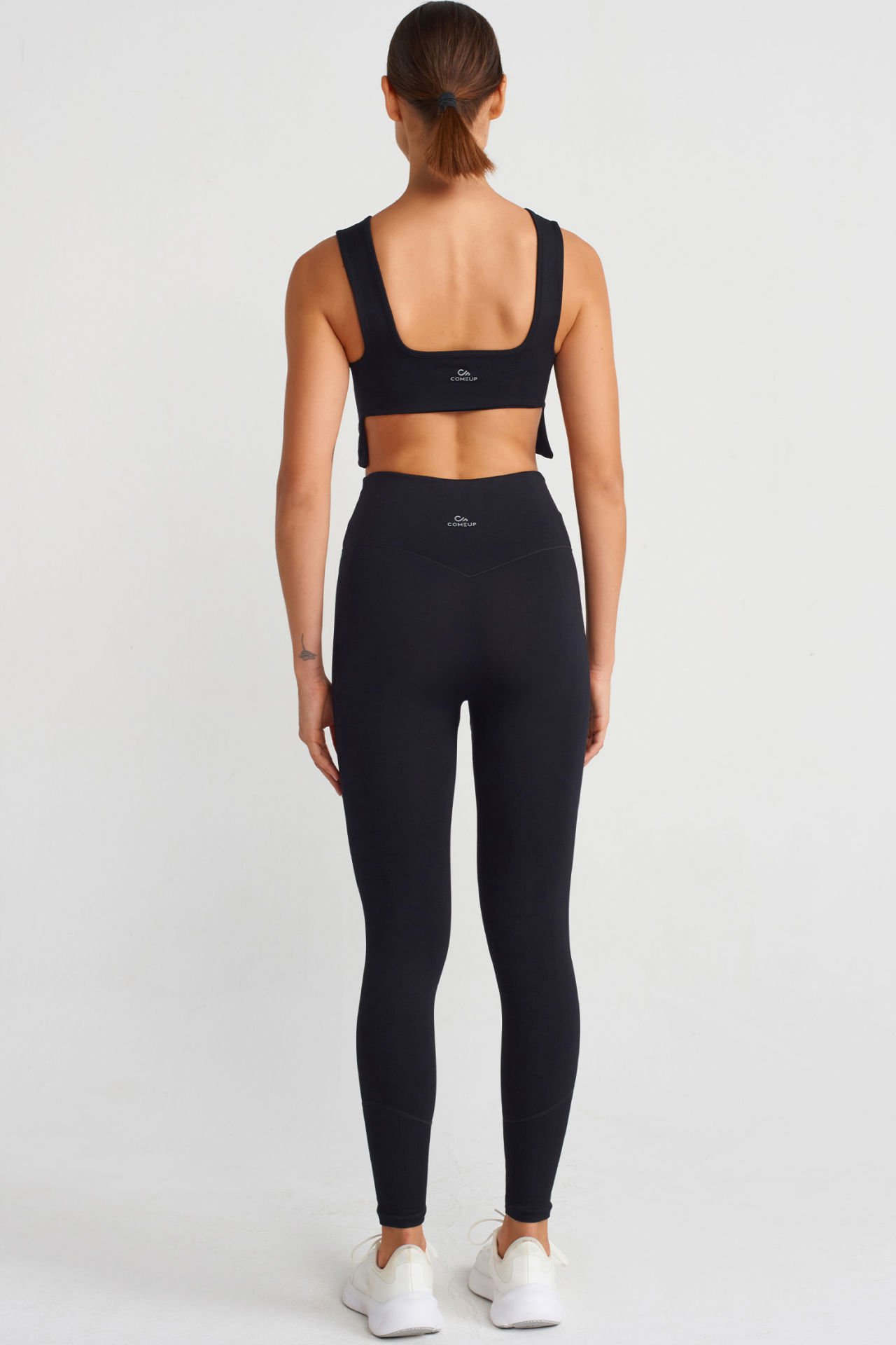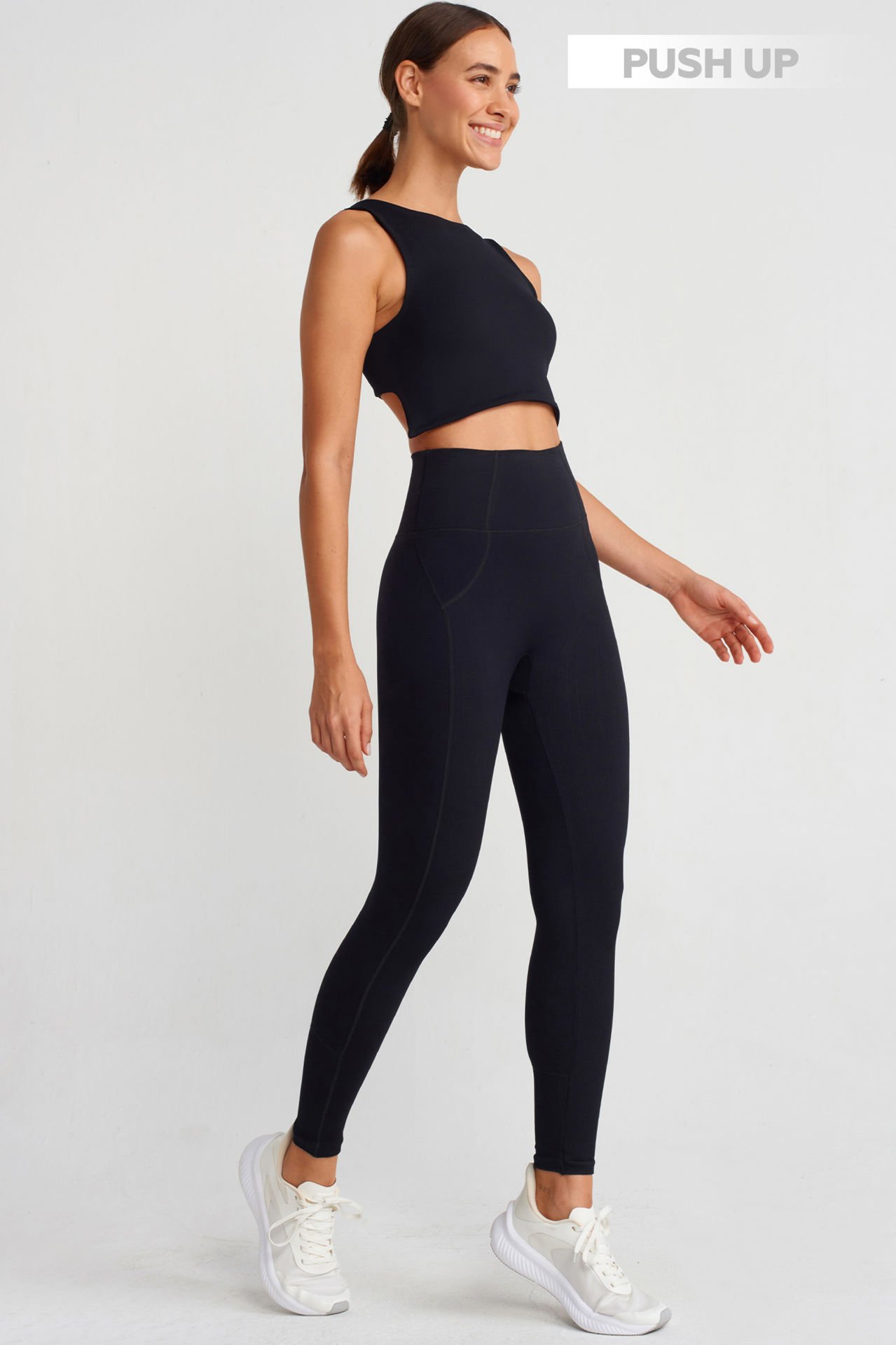 Yüksek Bel Dikiş Detaylı Push Up Tayt Siyah