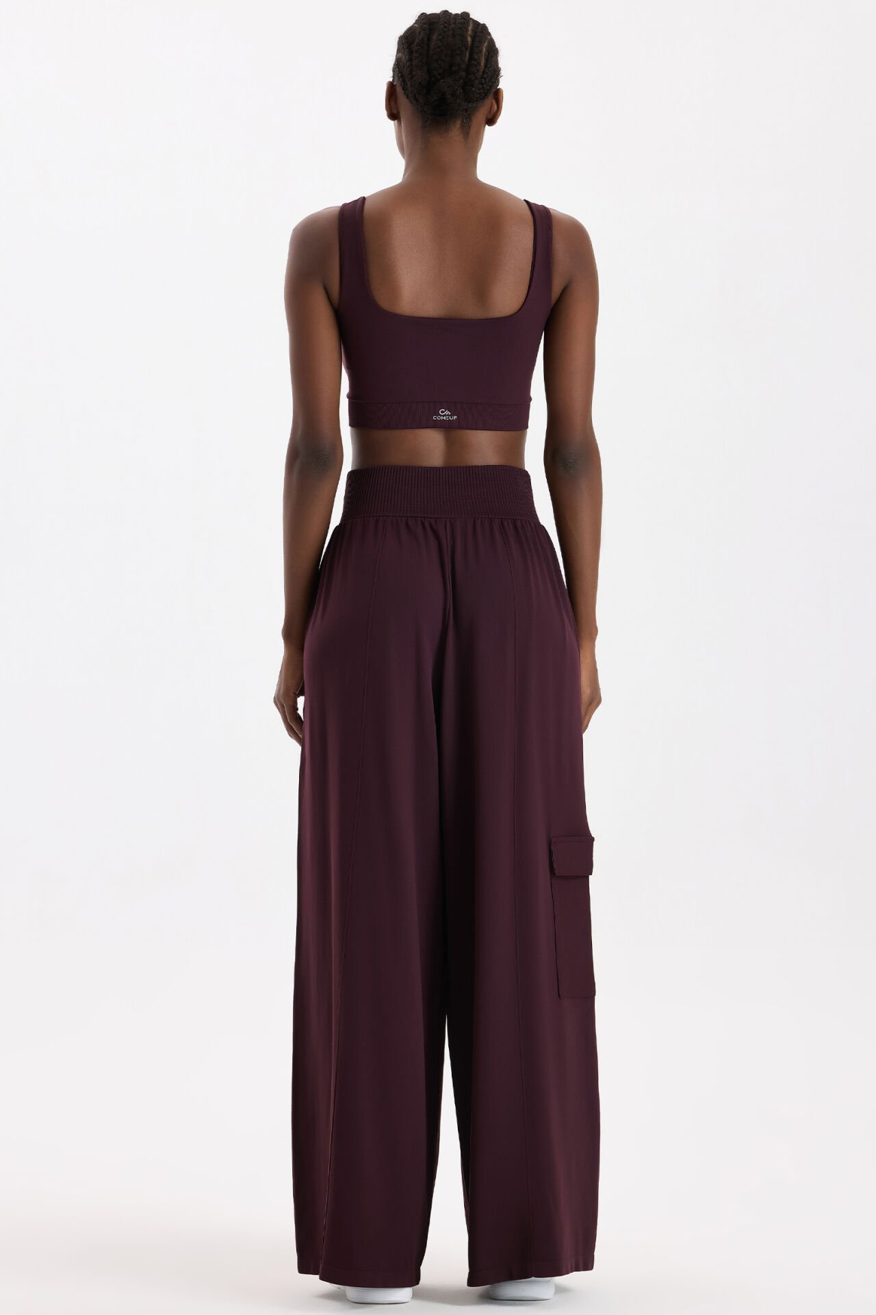 Yüksek Belli Kargo Cepli Pantolon Burgundy