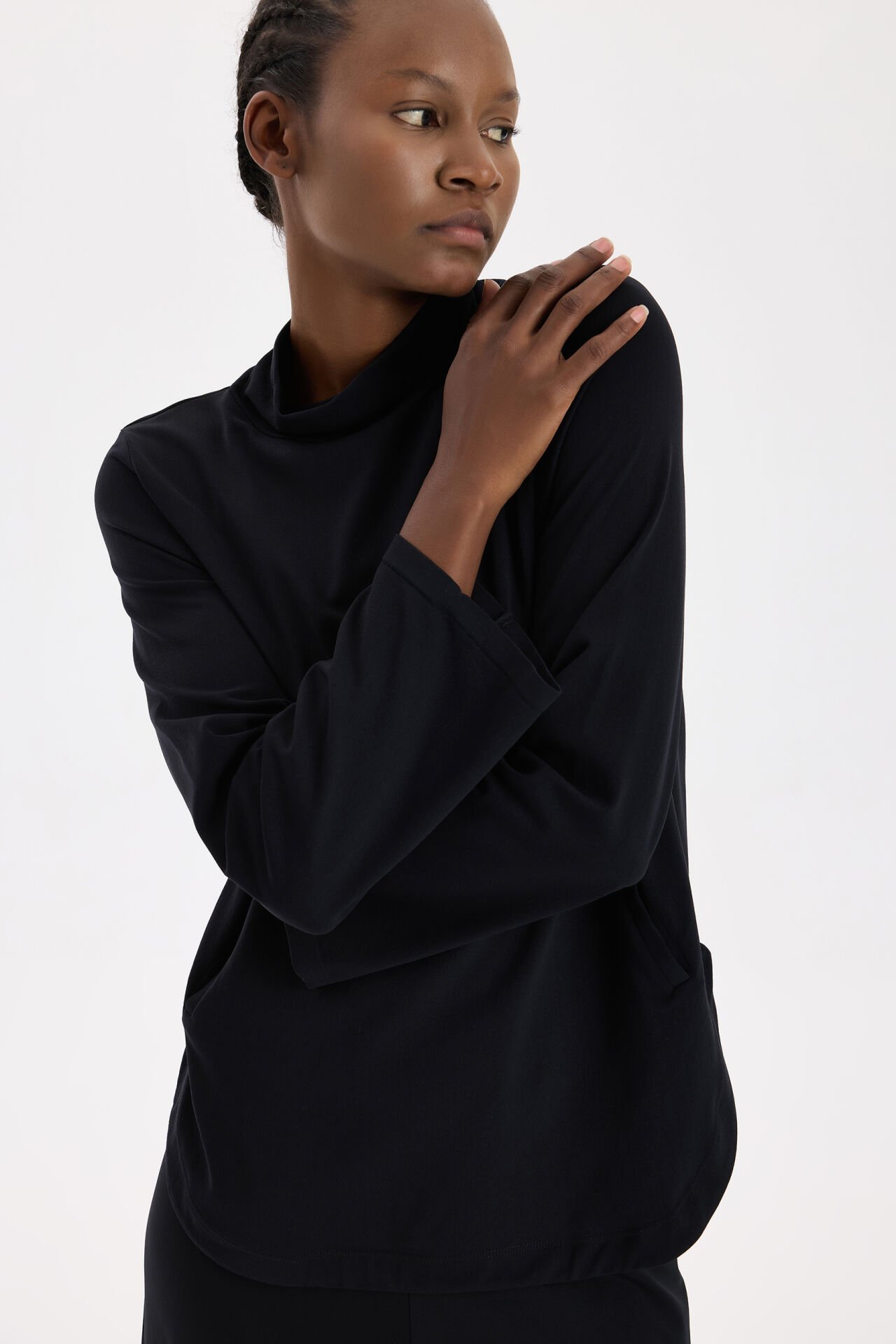 Yüksek Yaka Cepli Uzun Kollu Hafif Sweatshirt Siyah