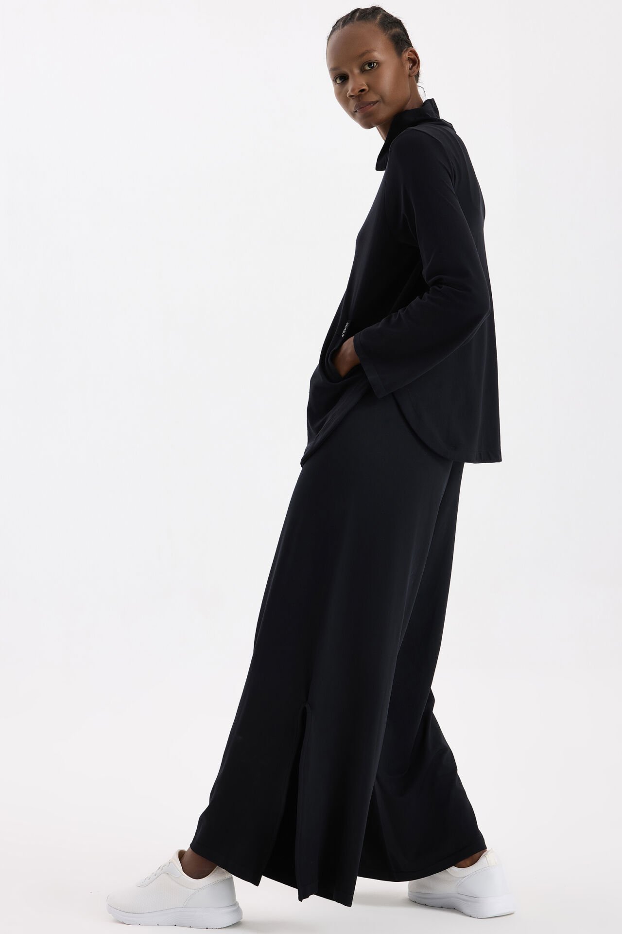 Modern tasarımı öne çıkaran oval kesimli etek ucu, ürüne zarif bir siluet kazandırır ve vücut hatlarına doğal bir akış sağlar. Yüksek yaka detayı, serin havalarda boyun bölgesini koruyarak hem fonksiyonel hem de estetik bir görünüm yaratır.
